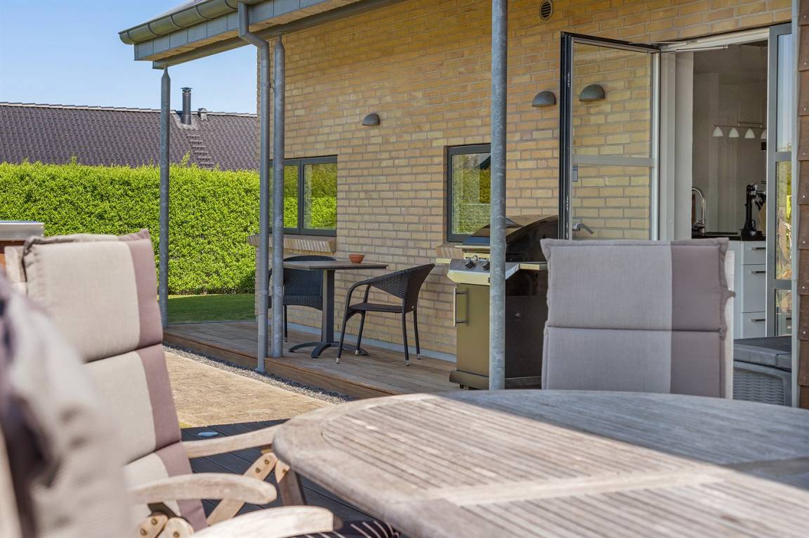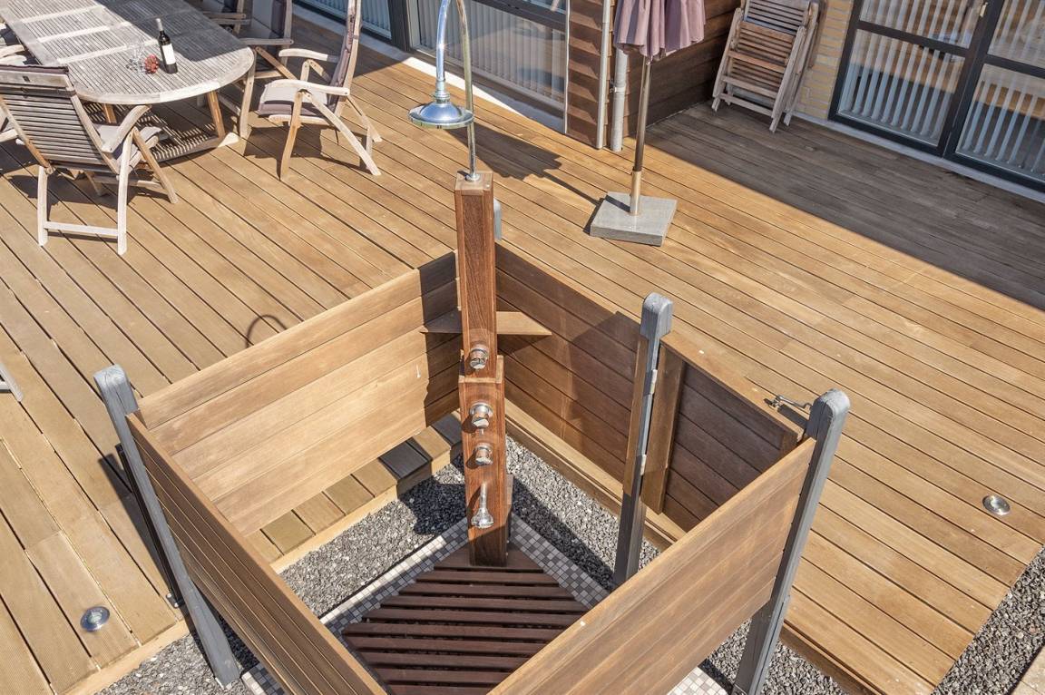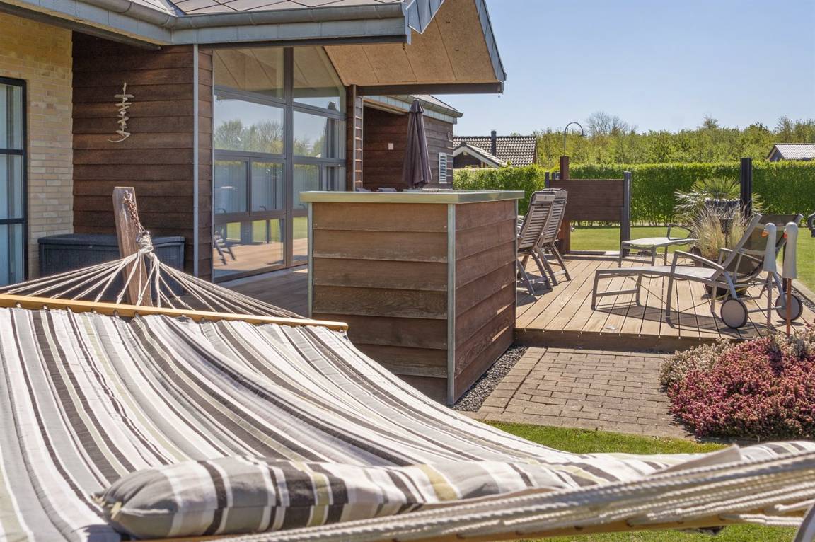 DraußenDie Ferienunterkunft liegt auf einem 1098 m² großen Gartengrundstück. Die Entfernung zum Meer beträgt 700 m. Die nächste Einkaufsmöglichkeit liegt 2000 m entfernt. Es steht ein 50 m² Terrassenareal zur Verfügung. Außerdem gibt es 8 m² überdachte Terrasse. Geräteraum. Spielturm. Außendusche. Es beteht die Möglichkeit das Essen in der Außenküche zuzubereiten. Es steht ein Grill zur Verfügung.Es steht eine Garage zur Verfügung. Es steht ein Carport zur Verfügung. Parkplatz auf dem Grundstück.