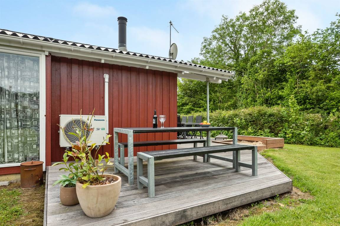 DraußenDie Ferienunterkunft liegt auf einem 848 m² großen Naturgrundstück. Die Entfernung zum Meer beträgt 150 m. Die nächste Einkaufsmöglichkeit liegt 5000 m entfernt. Es steht ein 40 m² Terrassenareal zur Verfügung. Schaukel. Es steht ein Grill zur Verfügung. Parkplatz auf dem Grundstück.