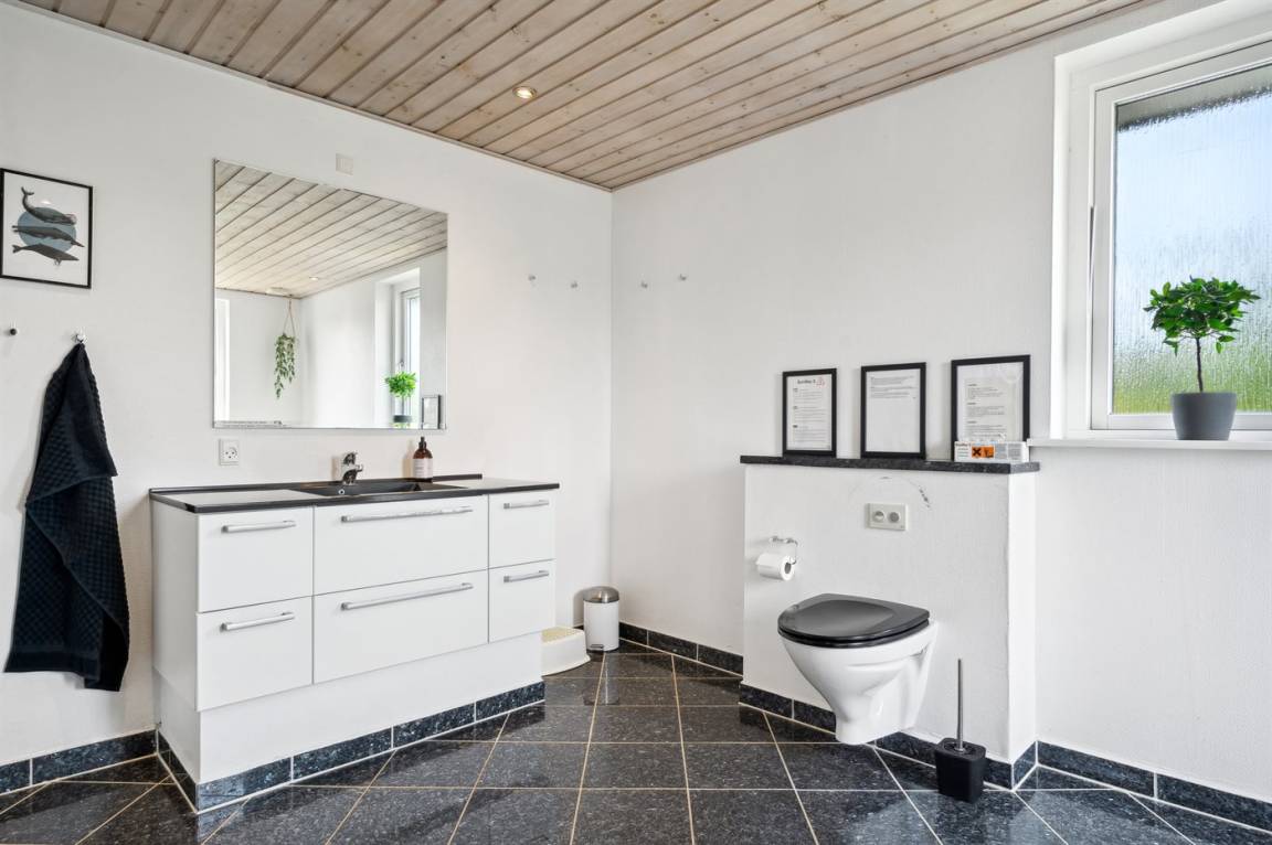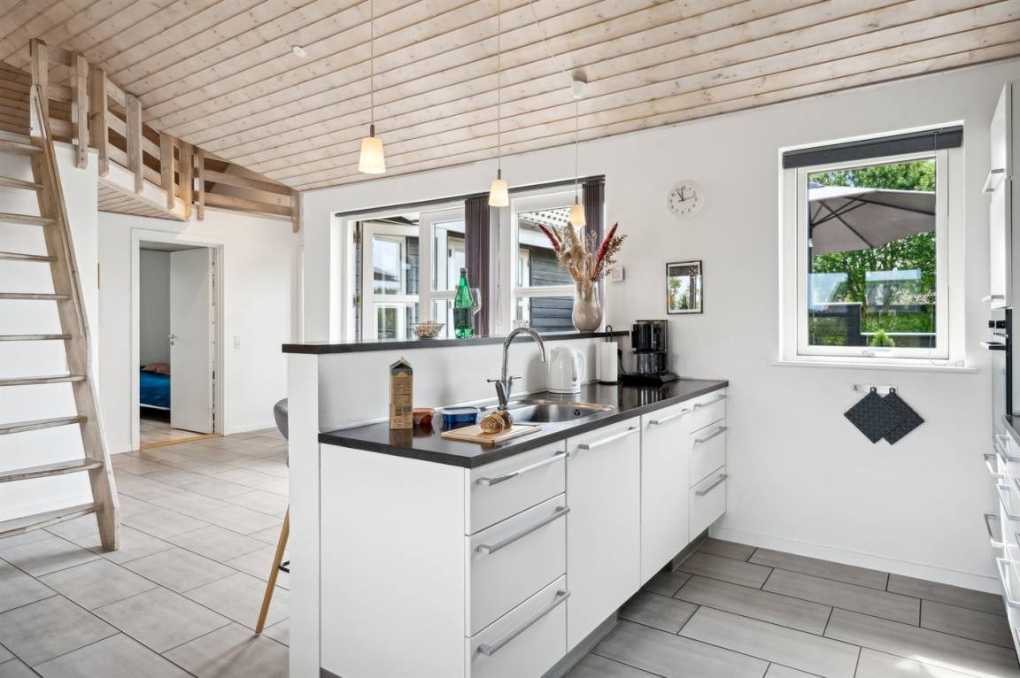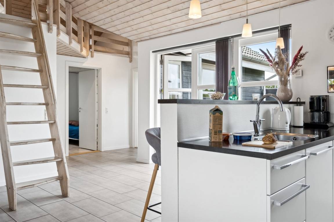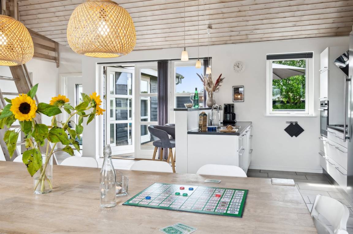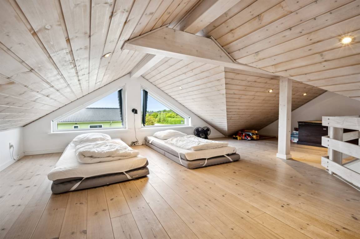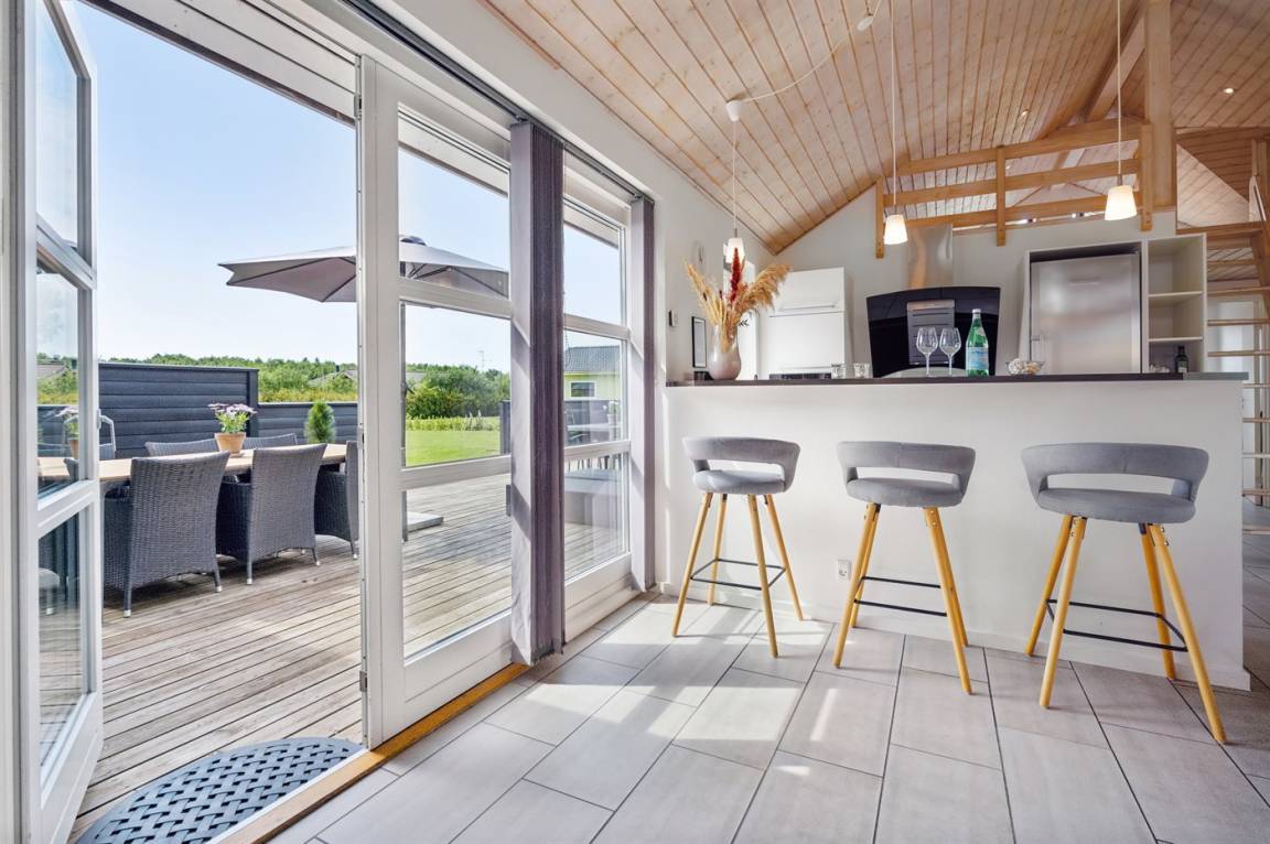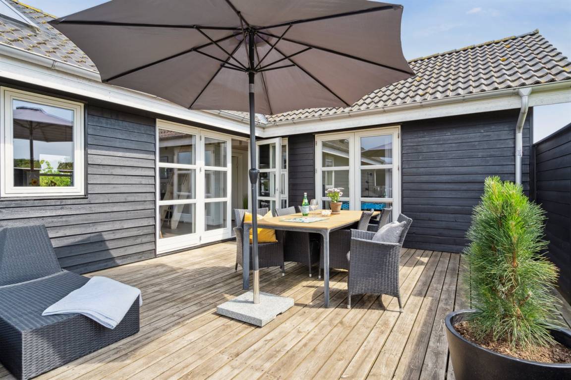 Das Ferienhaus liegt auf einem 1400 m² großen Gartengrundstück. Es sind 900 m bis zum Meer. Die nächste Einkaufsmöglichkeit, ein Minigolf/Grill/Minimarkt, liegt in einer Entfernung von 1300 m. Der Kaufmann Dagli'Brugsen und ein Bäcker liegen 2700 Meter entfernt. Es gibt einen Golfplatz in einer Entfernung von 12000 m. Zum Ferienhaus gehören 2 offene Terrassen, eine davon mit einem Hot-Tub, der mit mitgebrachtem Holz beheizt wird. Schaukel. Sandkasten. Fußballtor. Außenspiele. Grill zur Verfügung. Es ist eine Steckdose für das Laden von Elektroautos installiert. Typ 2 Steckdose. Mit 11 kW Ladeleistung. Parken am Ferienhaus.