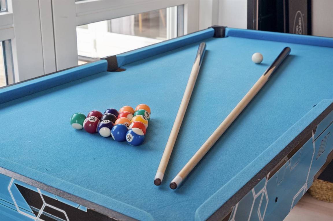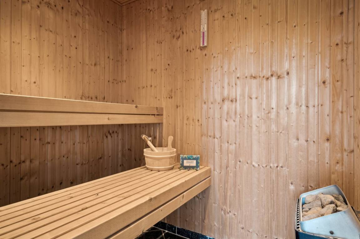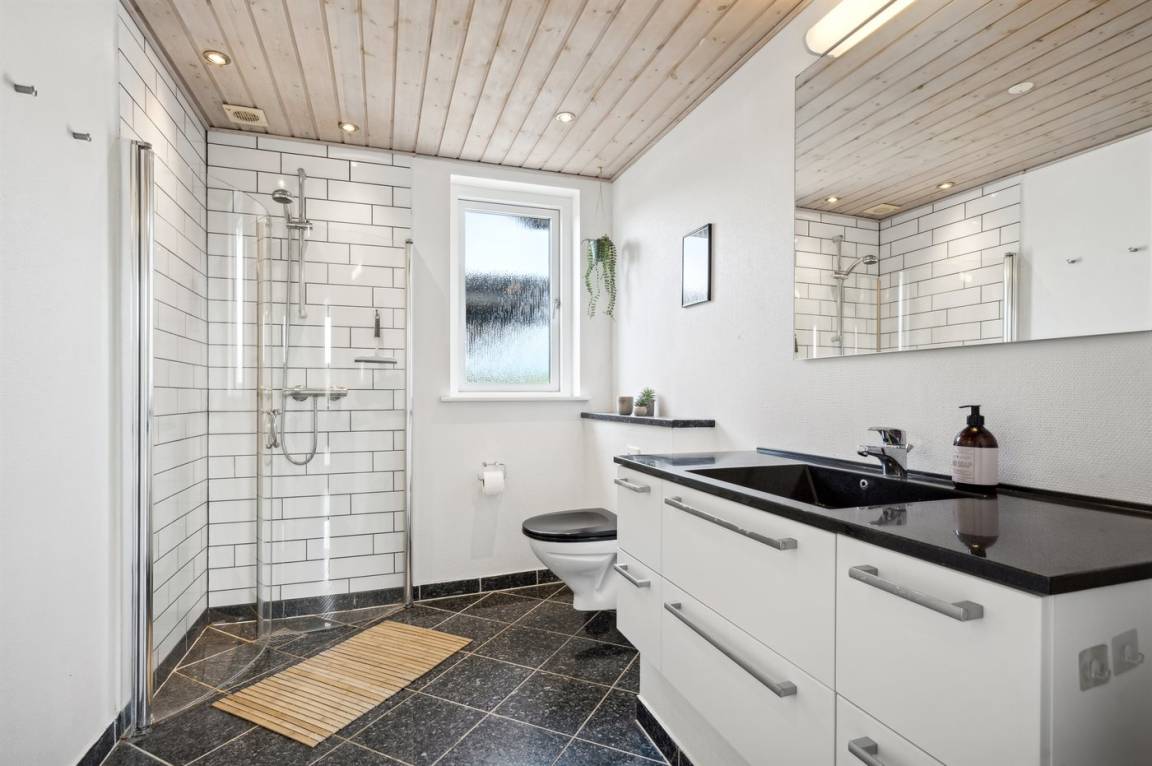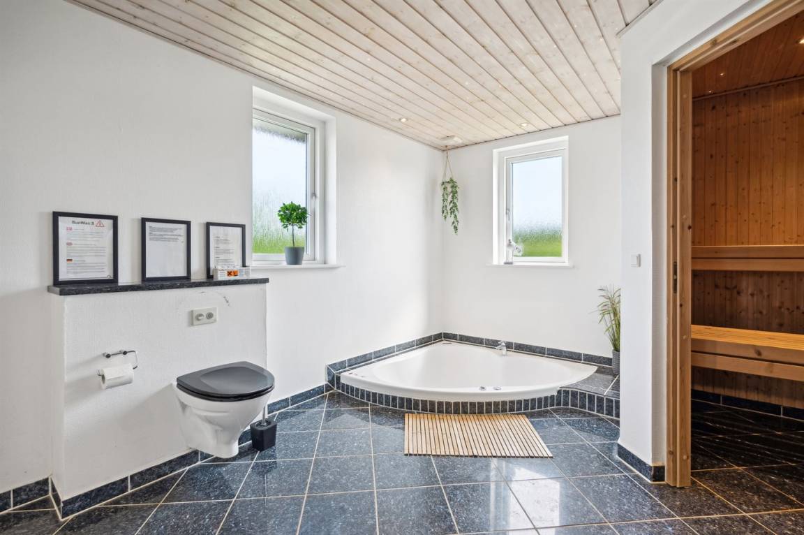 Es gibt 2 Badezimmer mit Duschnische und 2 Toiletten. Im großen Badezimmer gibt es zusätzlich einen Innen-Whirlpool für 2 Personen sowie eine Sauna. Beide Badezimmer haben Fußbodenheizung.