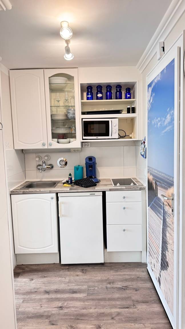 Cerankochfeld, Wasserkocher, Kühlschrank, Toaster, Geschirr und div. Küchenutensilien für Sie bereit.