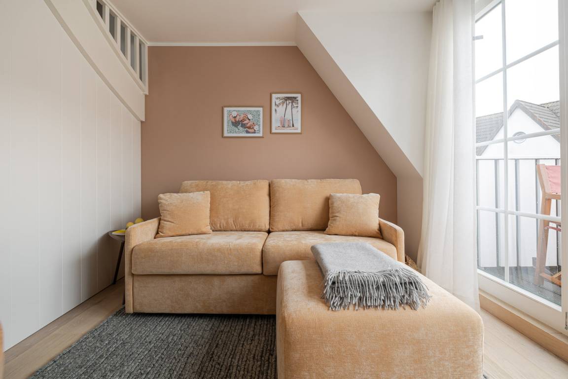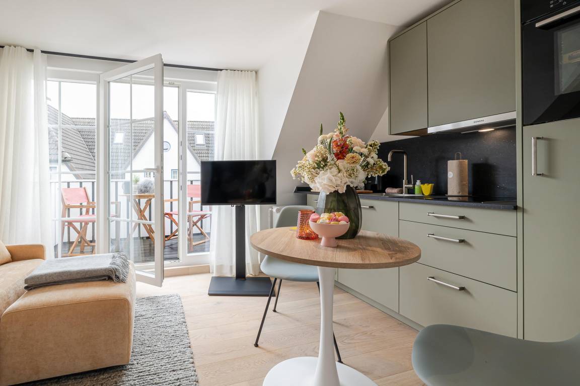 Von Mai bis Oktober genießen Sie Ihre Mahlzeiten oder ein Glas Wein auf dem möblierten Balkon mit Blick in die frische Sylter Luft. Das Bad verwöhnt Sie mit einer großzügigen Regendusche, Fußbodenheizung und Handtuchwärmer und wird so schnell zu Ihrer kleinen Wellnessoase.