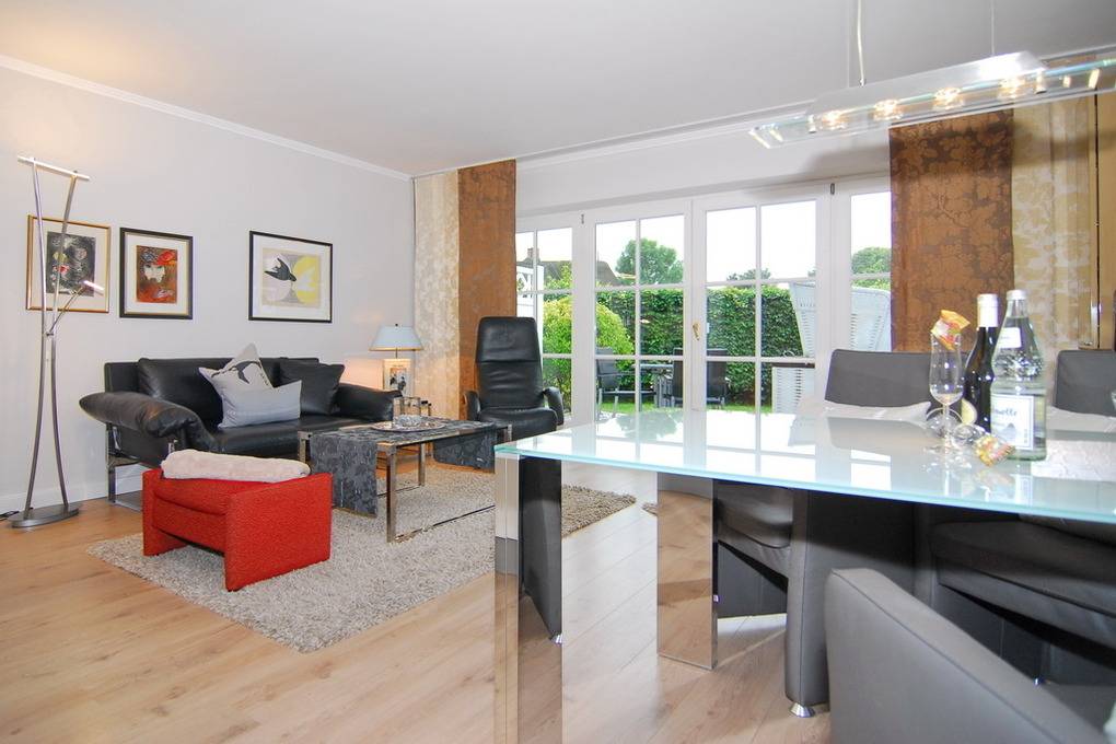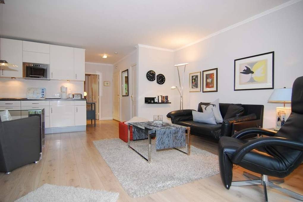 In der hundefreundlichen Wohnung stehen Ihnen neben einem geräumigen Wohnzimmer mit Sitz- und Essgruppe eine offene Küchenzeile mit Geschirrspüler und Mikrowelle zur Verfügung. Vom Wohnraum aus gelangen Sie auf die möblierte Westterrasse mit Strandkorb. Das separate Schlafzimmer bietet ein Doppelbett, Einbauschrank und TV. Ein geräumiges Duschbad / WC und eine praktische Abseite im Flur für Ihr Gepäck runden das Angebot ab.