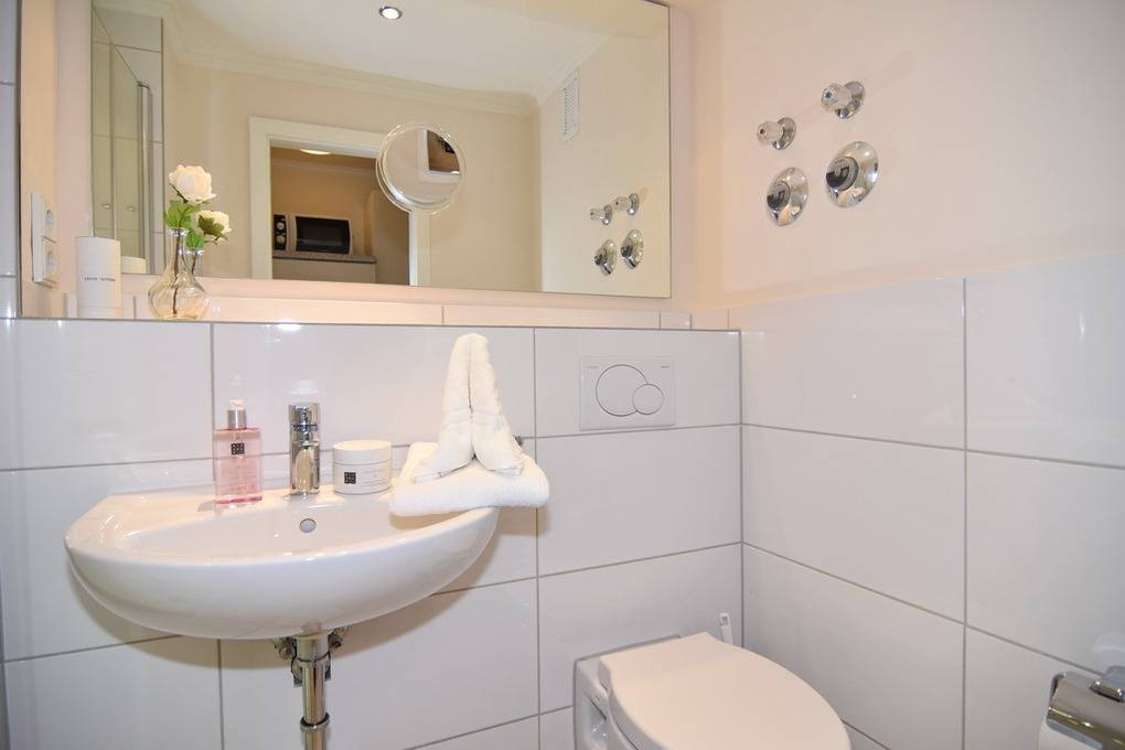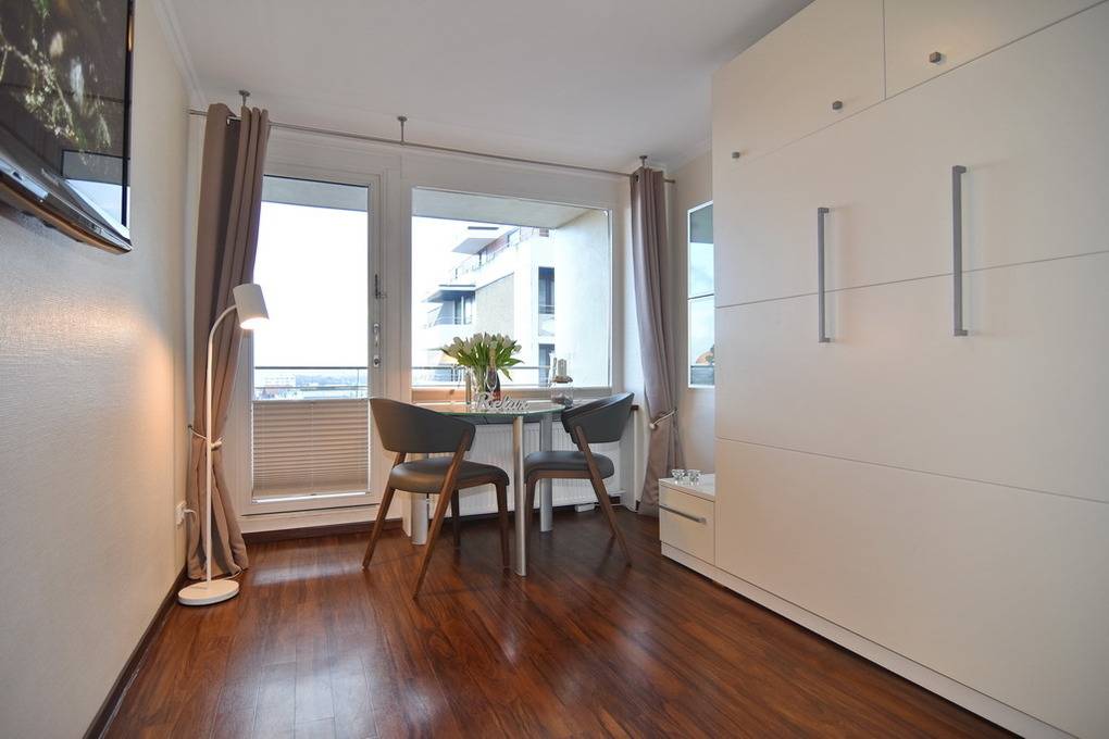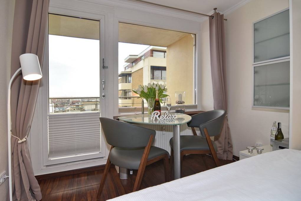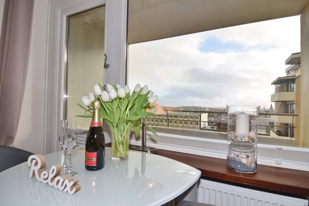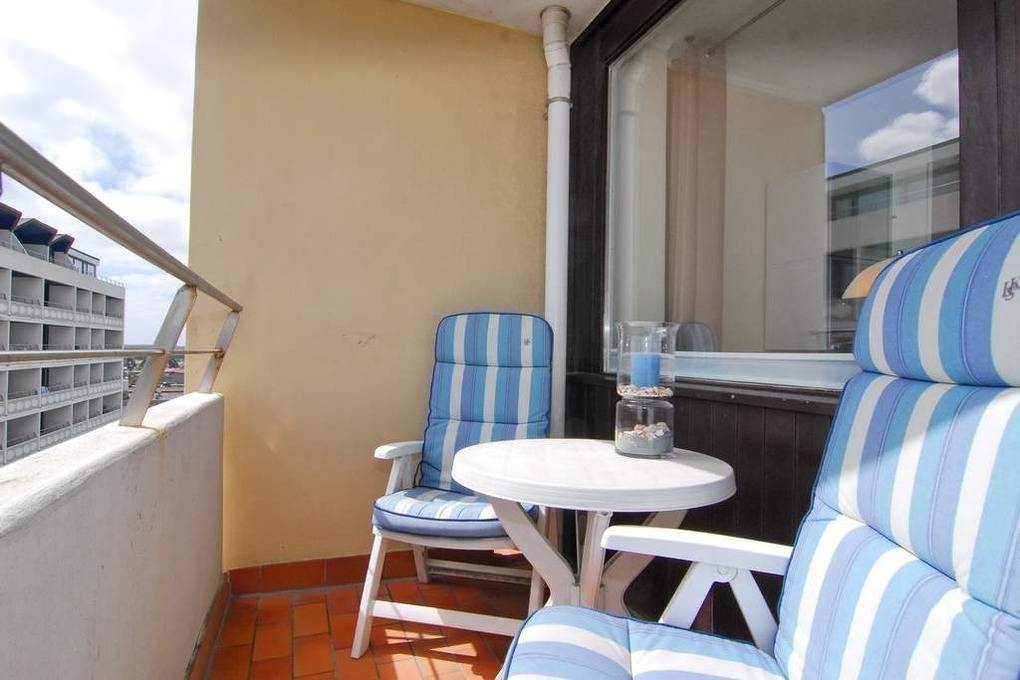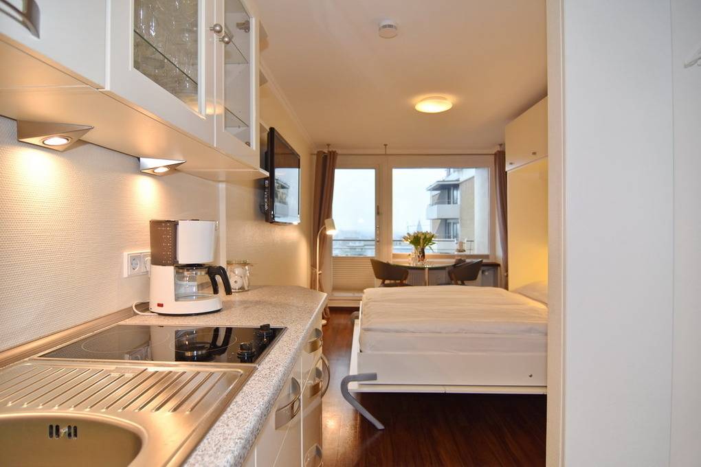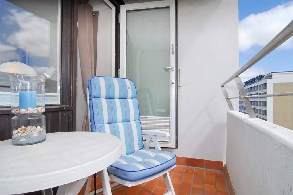 Exklusive 1-Zimmer-Ferienwohnung im 6.OG im Haus "Metropol" , ca. 23 qm, mit tollem Weitblick über die Insel. Nichtraucher-Wohnung. Helles Wohn- und Schlafzimmer mit Doppelschrankbett ( Matratzen 80x200 ), hochwertige Einbauküche mit Geschirrspüler und Mikrowelle, Essplatz am Fenster. Flachbild-TV und Radio. W-Lan (ohne Gewähr), Exklusives Duschbad/WC. Modern ausgestattet. Tierhaltung verboten. Bettwäsche und Handtücher sind zur Anreise aufgezogen. Ein PKW-Stellplatz kann kostenpflichtig zugebucht werden.