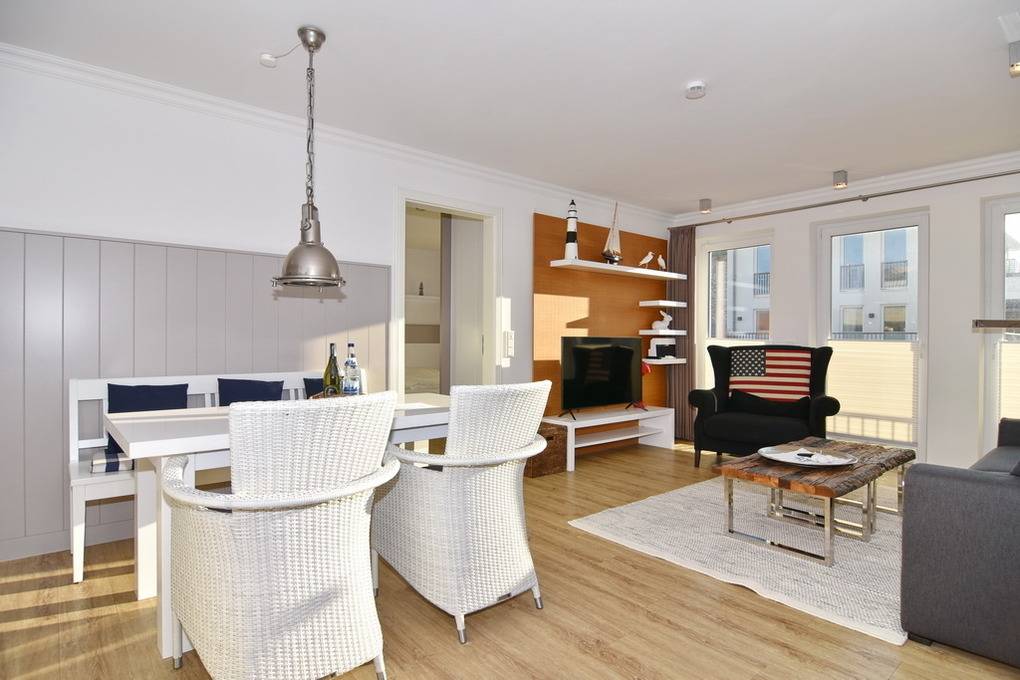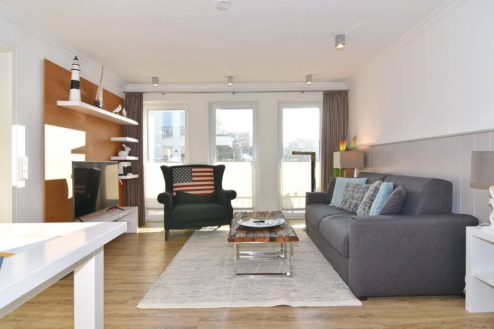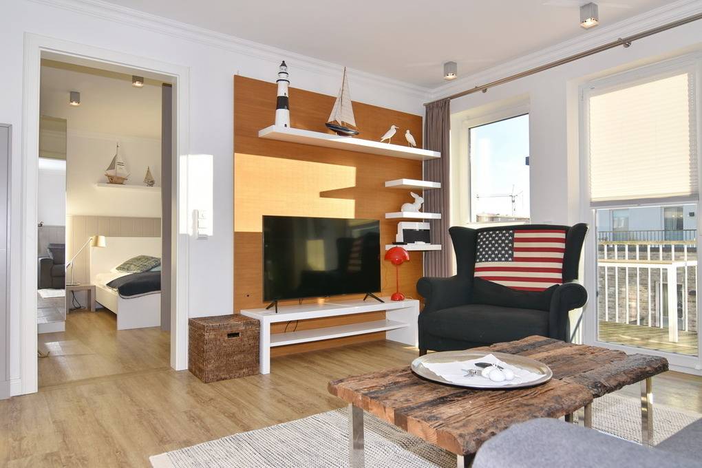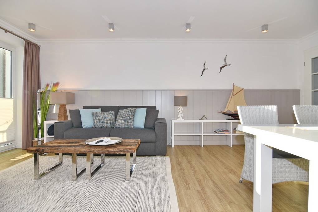 Exklusive 2-Zimmer-Ferienwohnung, 2. OG, ca. 68 m², "Nichtraucher",[nbsp][nbsp]Wohnzimmer mit Schlafcouch, Sessel, Esstisch mit Bank und 2 Stühlen, Flat-TV, Stereoanlage, W-LAN (ohne Gewähr) offene Küche m. Geschirrspüler, Mikrowelle und Backofen, Nespresso-Maschine, Schlafzimmer mit Doppelbett, Einbauschrank und Flat-TV ( mit Netflix-Funktion), Südbalkon, Duschbad / WC, Flur mit Garderobe. Fußboden mit Design Belag. Tierhaltung ist nicht gestattet. Garagen-Parkbox Nr. 24 ( nicht für jeden PKW geeignet, max. Höhe 1,50m, max. Gewicht 2t, Länge 5 m, Breite 1,9 m,vor Nutzung muss die Bedienanleitung gelesen werden. Anleitung befindet sich vor Ort !). Bettwäsche und Handtücher sind zur Anreise aufgezogen.