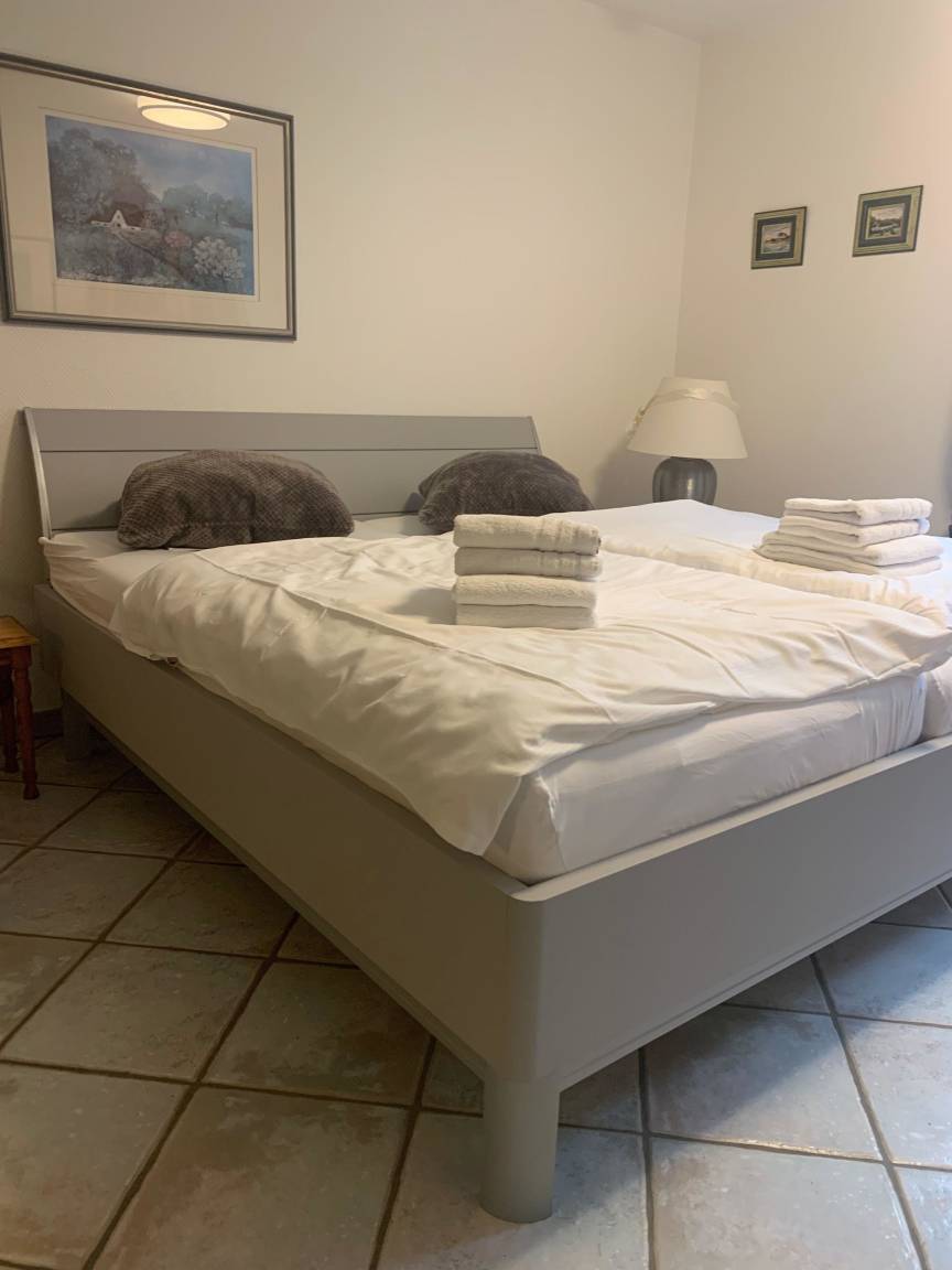 Das neue tolle Doppelbett (180 x 200 cm) mit hochwertigen geteilten Matratzen hat eine Komforthöhe ( Boxspringbett). Die Betten haben ein offnes Fußende