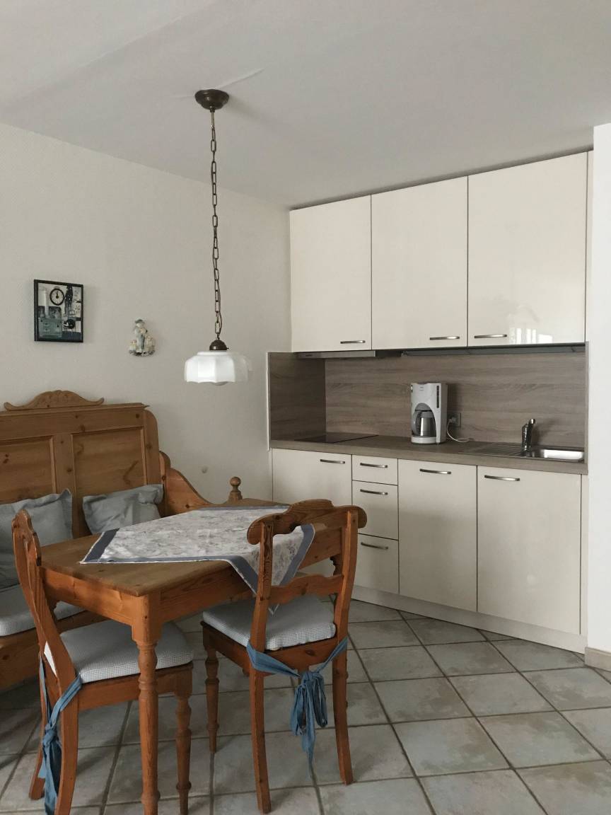 Die hochwertige und gemütliche Ferienwohnung lädt mit Sitzecke im Wohn- und Essbereich zu gemütlichen Stunden ein.