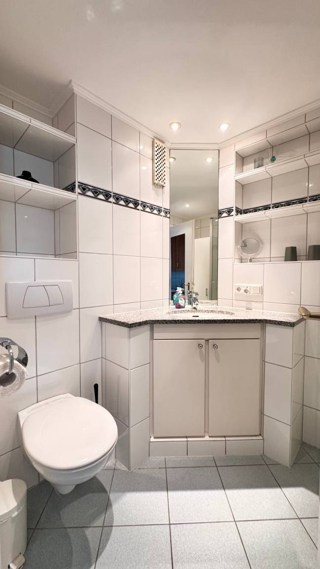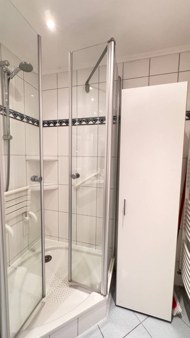 Es gibt ein helles Duschbad/WC mit Fön und Handtuchheizung.