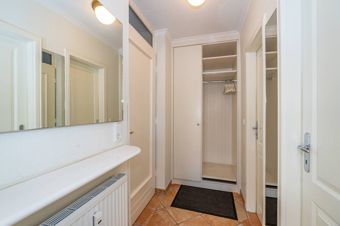 Die separate Küche mit Fenster und Tür ist kompakt und praktisch gestaltet. Sie ist ausgestattet mit einem Geschirrspüler, einer Mikrowelle sowie einem Kühlschrank mit Gefrierfach. Zur Grundausstattung gehören außerdem eine Kaffeemaschine, ein Wasserkocher und ein Toaster. Das ruhige Schlafzimmer bietet ein komfortables Doppelbett, einen geräumigen Kleiderschrank sowie einen weiteren Flachbild-TV für entspannte Abendstunden. Das moderne Badezimmer überzeugt mit einer Dusche, einem Waschtisch, einem Handtuchtrockner und einem WC.