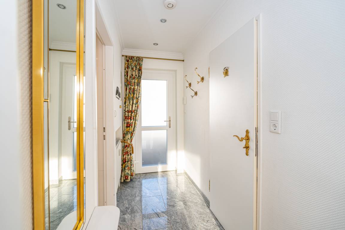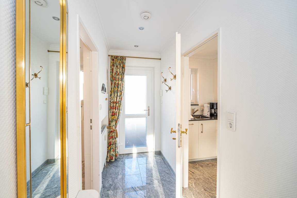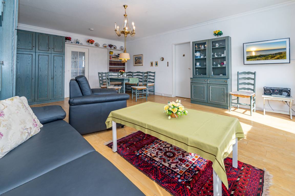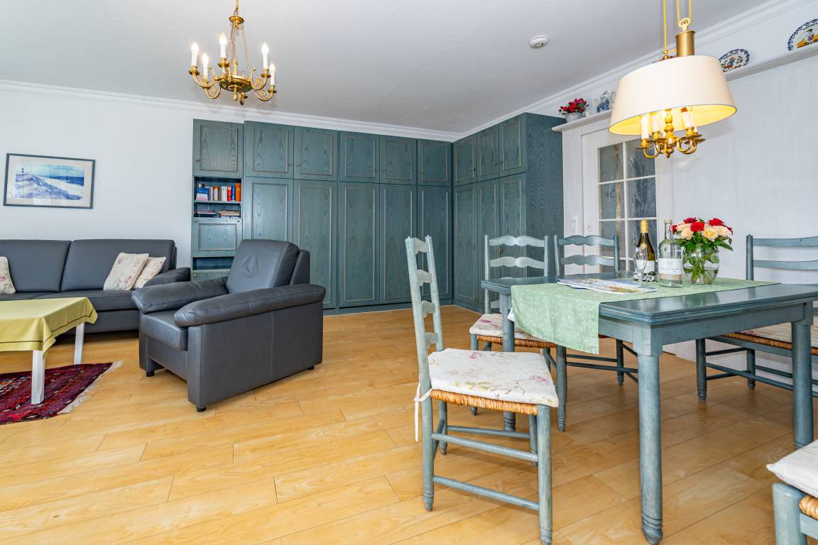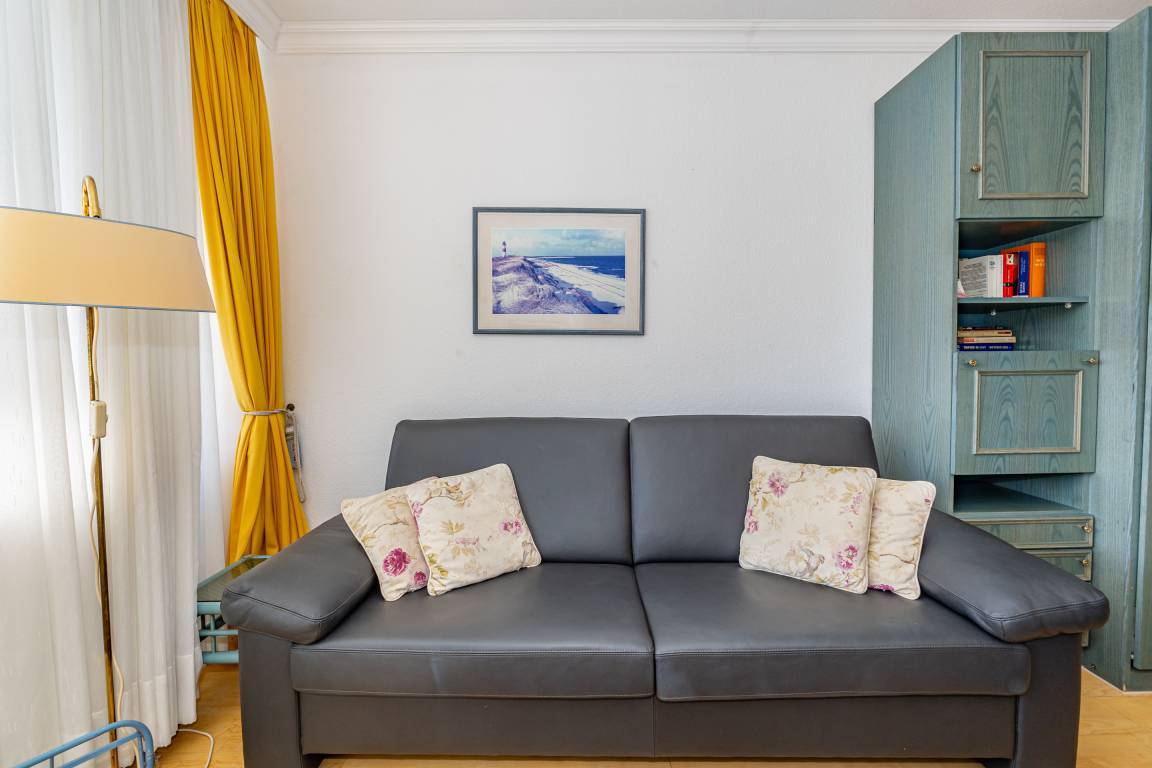 2-Zimmer-Nichtraucher-Ferienwohnung, ca. 66 m², in der 3. Etage für bis zu 4 Personen, mit Süd-Balkon mit "kleinem Meeresblick" vom Wohn- und Schlafzimmer aus.