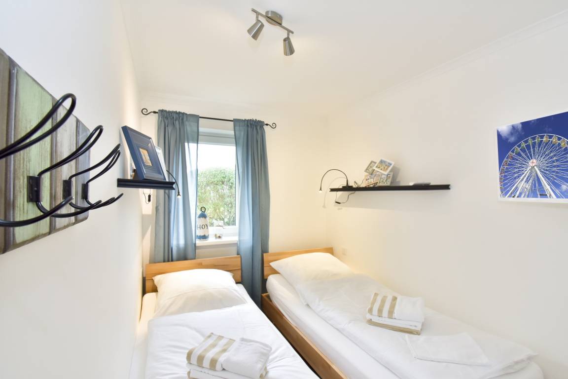 Die beiden Schlafzimmern (Doppelbett 1,80 m x 2,00 m, Einzelmatratzen bzw. zwei Einzelbetten 0,90 m x 2,00 m, jeweils ein Kabel-Flachbild-TV) versprechen einen erholsamen Schlaf während Ihrer Nächte auf Sylt.