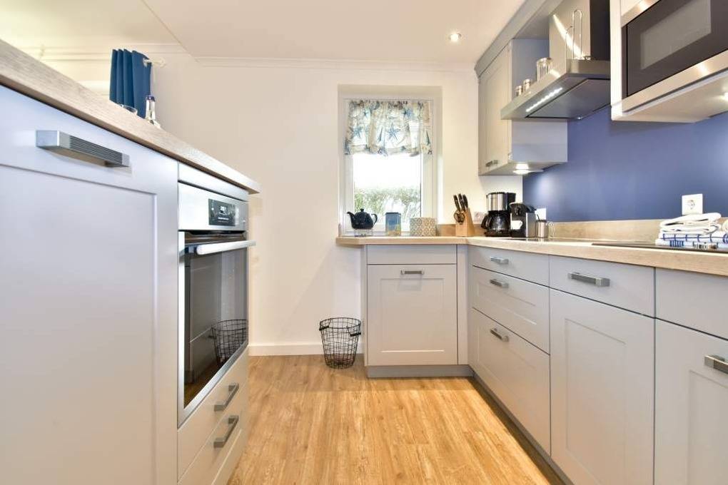 Vom Vorflur gelangt man direkt ins neue Duschbad/WC (extraflacher Duscheinstieg, Handtuchtrockner, Bidet, Waschtisch [&] Föhn) und ein paar Schritte weiter in den gemütlichen Wohnraum (Ecksofa, verlängerbarer Esstisch, Kinderstuhl, Kabel-Flachbild-TV, WLAN [&] Internet-Radio [&] kostenfreie Telefonie ins dt. Festnetz (o. Gewähr)). Der mit einer großzügigen Theke anschließende, offene Küchenbereich lädt auch mal zur Zubereitung eines umfangreicheren Menüs ein (Geschirrspüler, Backofen-/Mikrowellenkombination, 4-flammiges Ceran-Kochfeld, großer Kühlschrank mit 3*-Gefrierfach) und hält eine Kaffee- [&] Nespresso-Maschine, Wasser- [&] Eierkocher sowie einen Toaster als Grundausstattung für Sie bereit.