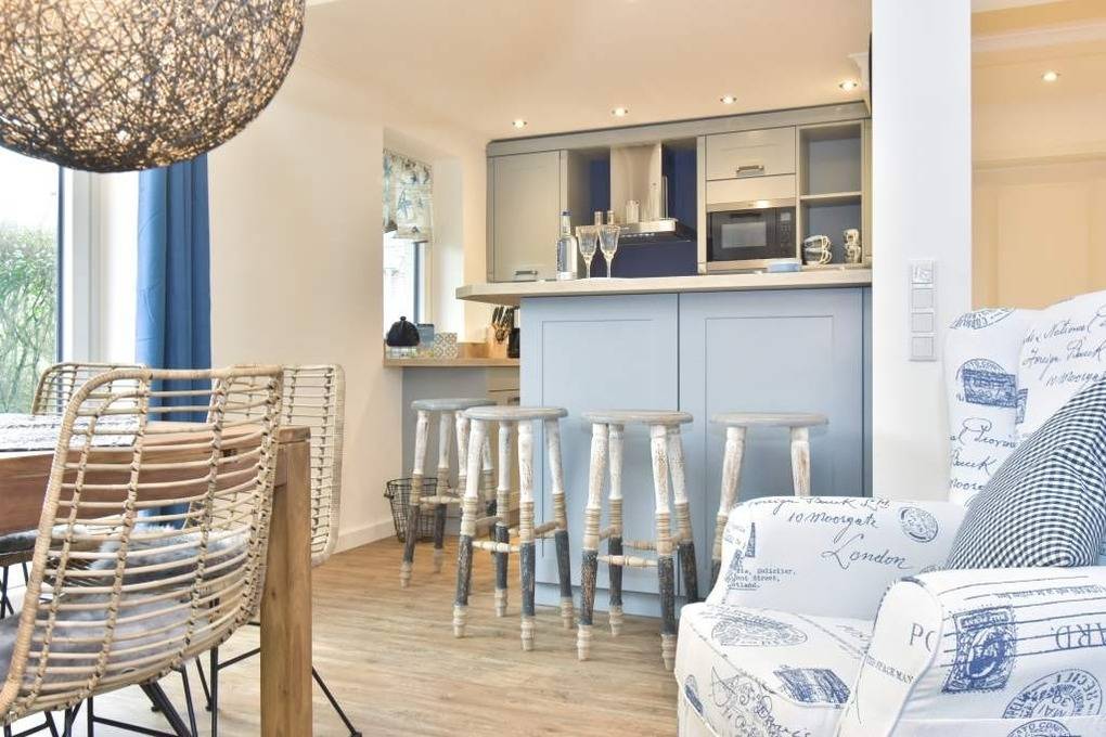Ruhig und idyllisch liegt diese geschmackvoll und hochwertig renovierte, gemütliche 3-Zimmer-Nichtraucher-Ferienwohnung (ca. 54 m², 4 Personen) im Parterre eines 6-Parteien-Hauses in zweiter Reihe. Genießen Sie die Sonne im Strandkorb im eingegrenzten Terrassen-/Gartenteil in Süd-West-Ausrichtung, lassen Sie sich auf den gemütlichen Gartenmöbeln Ihr Gegrilltes vom zur Verfügung stehenden WEBER-Gasgrill schmecken, nutzen Sie Ihre eigene auf der Terrasse ebenfalls bereitstehende Sauna, oder trotzen Sie dem Nordseewetter bei einer Tasse Tee in der heimeligen Wohnstube.
