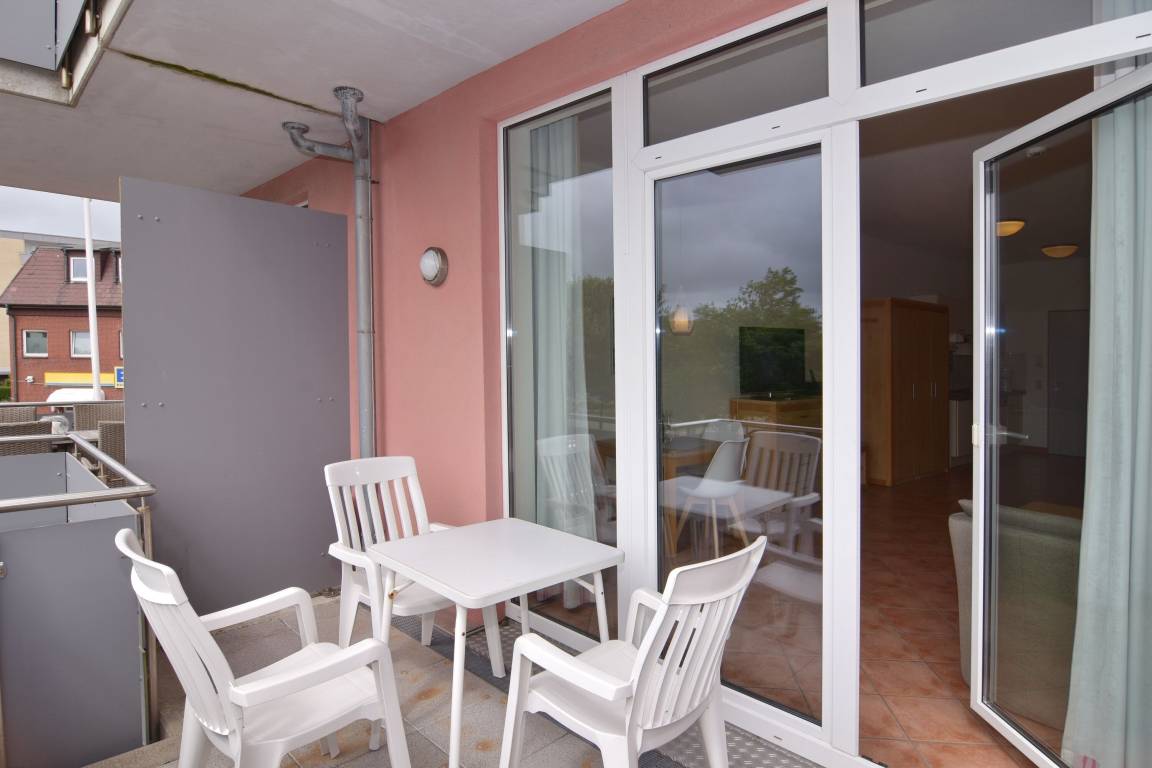 1-Zimmer-Ferienwohnung im roten Haus, Nichtraucher-Whg., ca. 39m², 1. OG. Wohn-/Schlafraum mit Südbalkon, Doppelbett, Essplatz, 2-Sitzer-Sofa (ausziehbar/als Doppelliege nutzbar) und Sessel, Kabel-TV, Küchenzeile mit Geschirrspüler, Mikrowelle, Nespressomaschine, Duschbad/WC. Das Apartment ist komplett gefliest. Internetanschluß (ohne Gewähr). Waschküche und Fahrradkeller im Nebenhaus "Mauritius". Pkw-Stellplatz kann kostenpflichtig hinzugebucht werden. Bettwäsche und Handtücher sind zur Anreise aufgezogen! Tierhaltung ist gestattet und muss angemeldet werden.