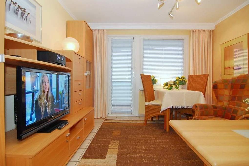 2-Zimmer-Ferienwohnung "Nichtraucher", ca. 44 m² im 4.Obergeschoss des Haus Ankerlicht. Wohnraum mit Couch und Sessel, Eßtisch am Fenster, Flachbild-TV und Radio, Ostbalkon mit Balkonmöbeln, Schlafzimmer mit Doppelbett (2x90x200), Duschbad/WC, separate Küche mit Geschirrspüler, Flur mit Garderobe. Das Apartment ist komplett gefliest, Tierhaltung ist nicht gestattet. PKW-Stellplatz Nr. 32 auf dem Parkdeck. Waschküche ist im Hause. Bettwäsche und Handtücher sind zur Anreise aufgezogen. Tierhaltung und Rauchen ist nicht gestattet.