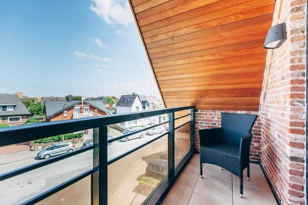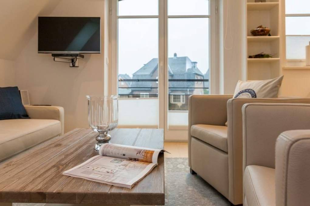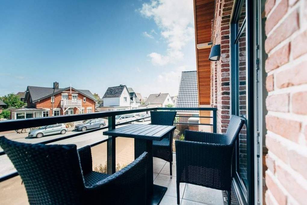 Luxuriöse 3-Zimmer-Maisonette-Nichtraucher-Ferienwohnung, ca. 69 qm, im 1. Obergeschoss, ein Westbalkon und eine Westloggia für 4 Personen.