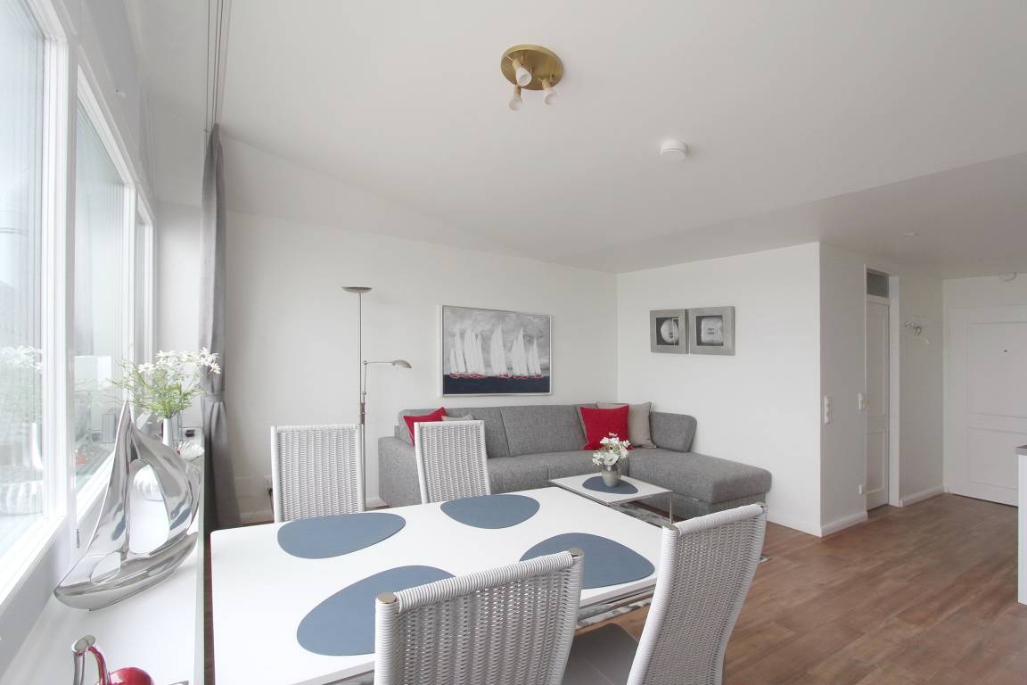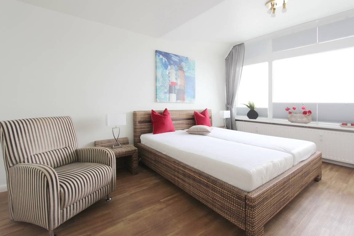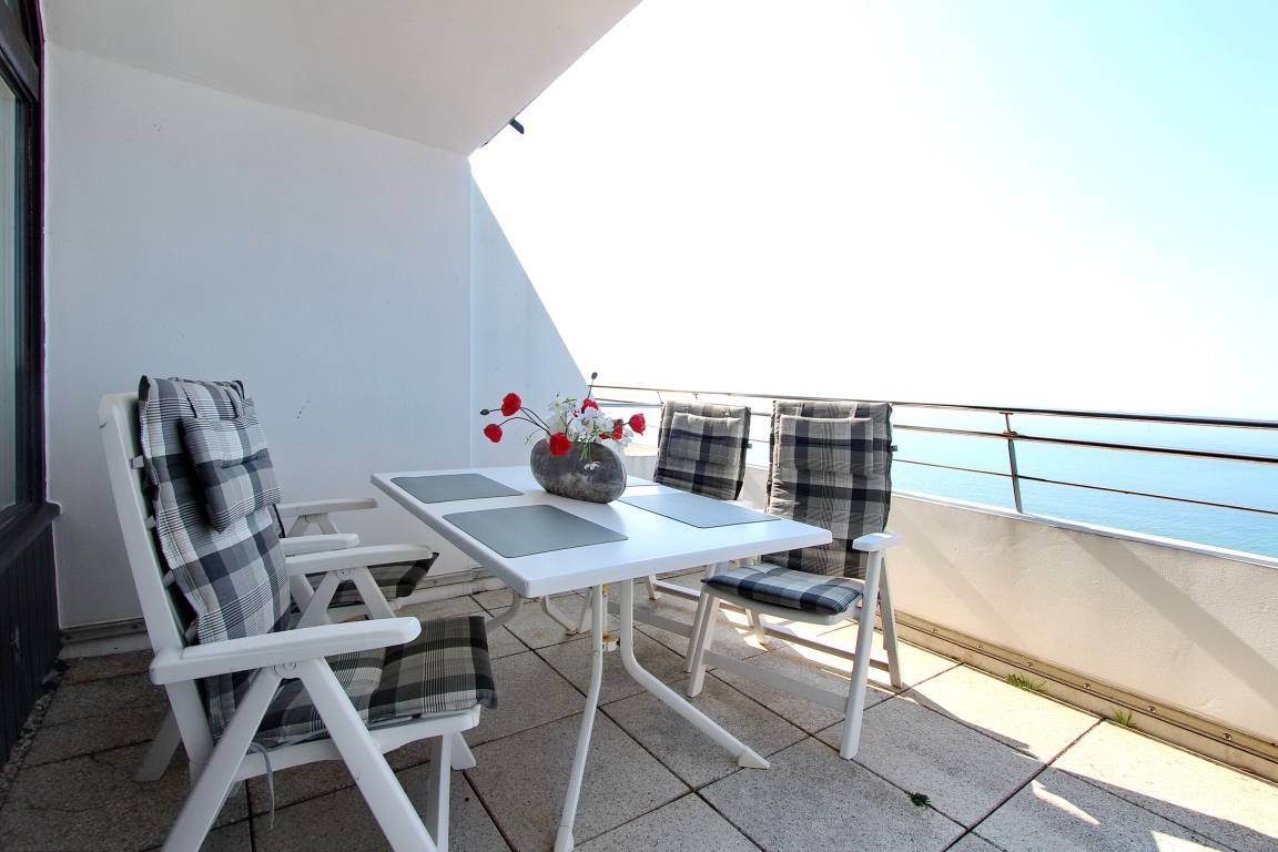 Wunderschöne Penthousewohnung in der 14. Etage im Haus Metropol mit einem unvergleichlichen Weitblick auf die Nordsee. Das Wohnzimmer, mit vorgelagerter Westdachterrasse, wurde im Frühjahr 2020 neu eingerichtet und verfügt über eine bequeme Sitzgruppe mit Schlaffunktion (Komfortmatratze), einem Fernsehsessel und einen großen Esstisch am Fenster mit 4 Stühlen. Gemütliche Candle Light Dinner zu zweit können hier, genauso wie Spieleabende mit der ganzen Familie, stattfinden. Das Schlafzimmer verfügt über ein feststehendes Doppelbett, einen Schreibtisch zum Erledigen der Urlaubspost, einen großen Kleiderschrank und einen zusätzlichen Flachbildfernseher (32 Zoll). Ein Babyreisebett hat hier auch Platz und wird Ihnen von der Eigentümerin kostenfrei zur Verfügung gestellt. Auf der großzügigen Westdachterrasse gibt es Balkonmöbeln von Kettler mit Auflagen und einen Strandkorb. Um sich selbst zu verpflegen gibt es im Wohnbereich eine offene Küche mit Mikrowellen-Backkombination, eine Bosch Küchenmaschine, einen Geschirrspüler und ein Ceranfeld mit 4 Herdplatten. Küchengeräte von WMF, eine zusätzliche Nespressomaschine und hochwertiges Geschirr und Gläser sind vorhanden. Das Badezimmer hat 2 Waschbecken und eine Dusche. Handtuchtrockner, Fön und ein Kosmetikspiegel gehören zur Ausstattung. An technischen Geräten sind: ein 40 Zoll Flachbildfernseher von Panasonic, ein Blu Ray Player und eine Bluetoothanlage von Sony mit CD Player vorhanden. Der Eigentümer verfügt über einen eigenen Internetanschluss (Zugangsdaten in der Wohnung) der kostenfrei zu nutzen ist. Diese Nichtraucherwohnung in der Penthouseetage ist über eine Treppe erreichbar, der Aufzug geht nur bis zur 13. Etage. Wohnungsgröße: ca. 70 m².