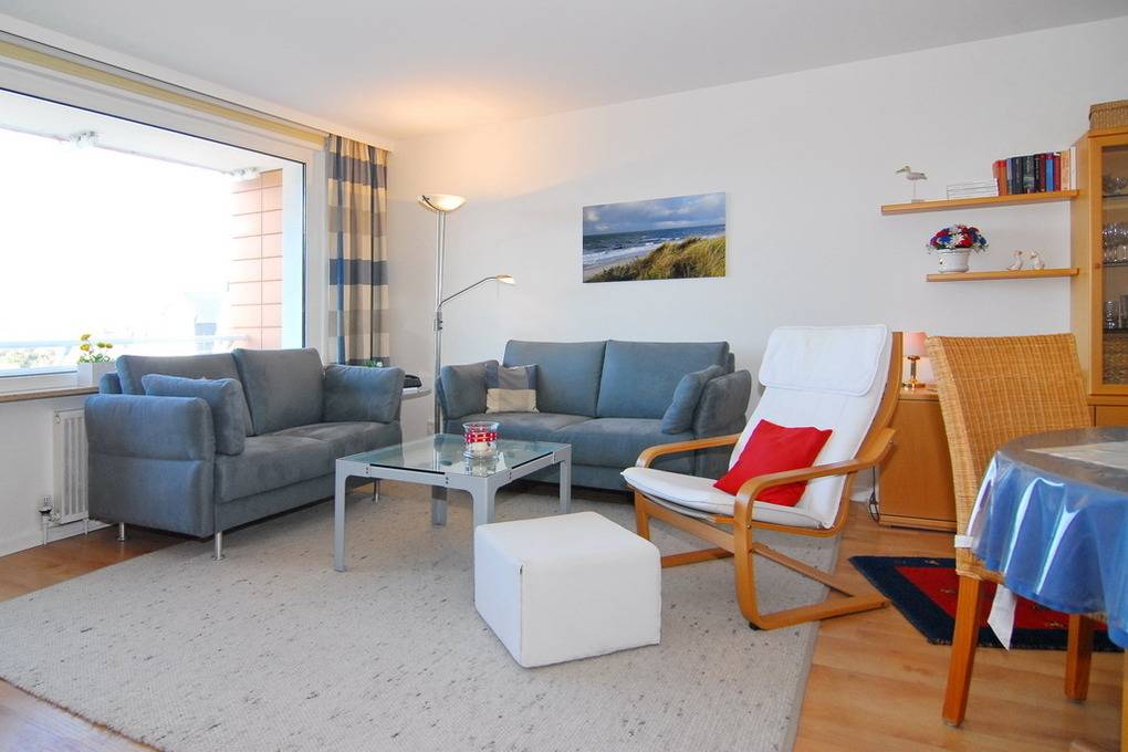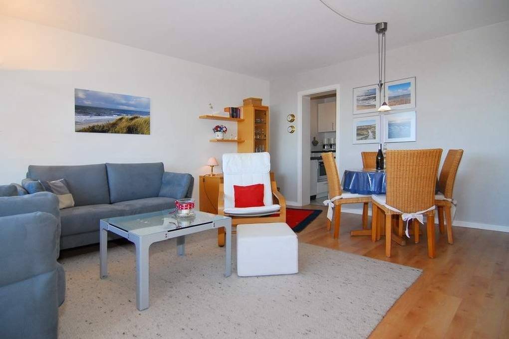 2 Zimmer-Ferienwohnung im Haus Windhuk, 44 m², 3. OG, Nichtraucher, Balkon mit Blick auf die Dünen und auf's Meer, Wohnzimmer mit Couchecke und Sessel, Doppelschrankbett, Essplatz, Radio, Kabel-TV, Telefon, WLAN (ohne Gewähr), kleine Küche mit Mikrowelle inklusive Backfunktion und Geschirrspüler, Schlafzimmer mit französischem Doppelbett sowie Kleiderschrank, Flur, Duschbad/WC, Wohnung ist komplett mit Laminat ausgelegt, PKW-Stellplatz 27, Fahrradständer im Hof, Waschküche im Keller, Bettwäsche und Handtücher sind zur Anreise aufgezogen. Tierhaltung nicht erlaubt.