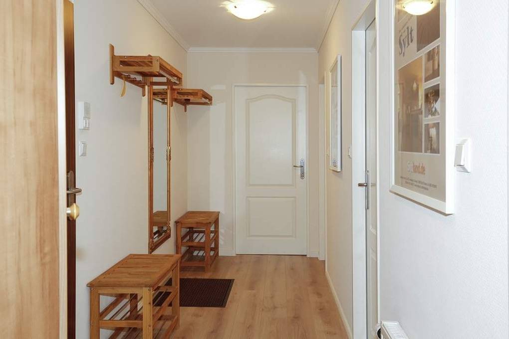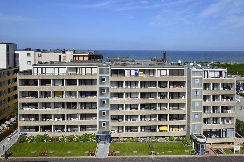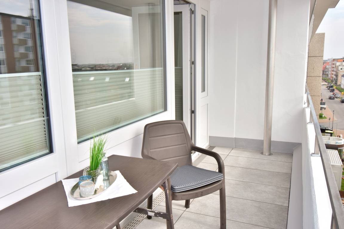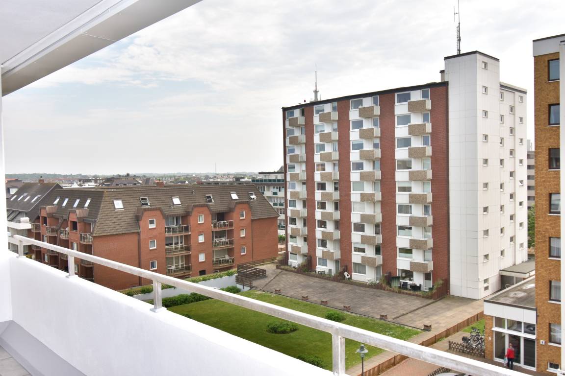 Aufwändig und modern renovierte und komplett mit Laminat ausgelegte 3-Zimmer-Nichtraucher-Ferienwohnung (ca. 63 qm) in der 4. Etage zur Landseite mit Ostloggia (Morgensonne, mit Balkonmöbeln und Auflagen) für max. 4 Personen.