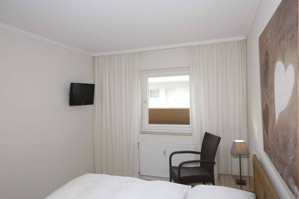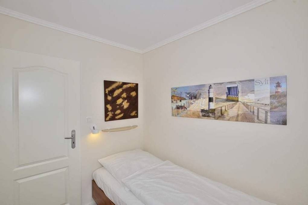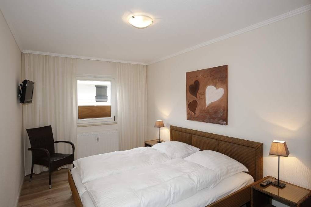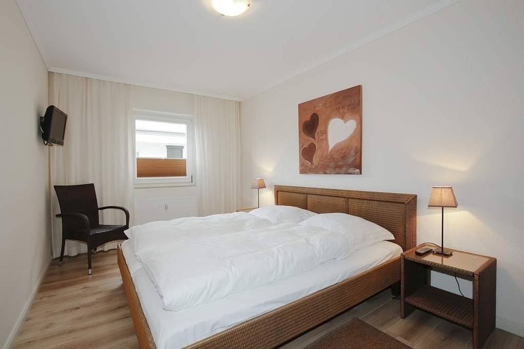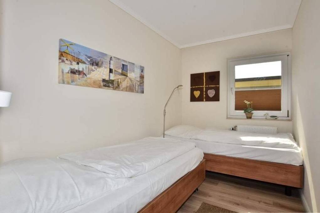Das große Schlafzimmer ist mit einem Doppelbett (mit Einzelmatratzen) und das kleine Schlafzimmer mit zwei über Eck stehenden Einzelbetten ausgestattet.