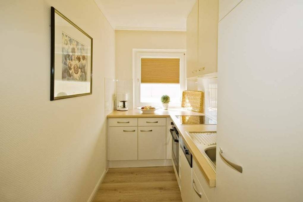 Die neue separate Küche hat einen Geschirrspüler, einen Herd mit Backofen und Cerankochfeld. Kaffeemaschine, Wasserkocher und Toaster gehören zur Grundausstattung.
