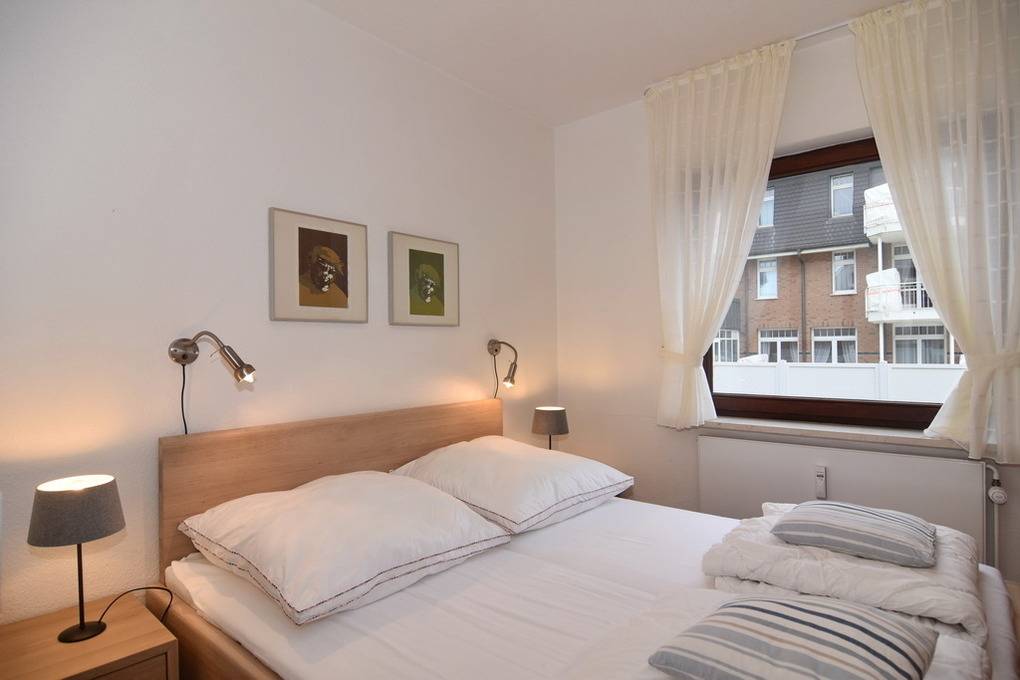 Geräumige 2-Zimmer-Ferienwohnung mit Südbalkon im Hochparterre. Ca. 50m². Nichtraucher-Whg! Wohnzimmer mit ausziehbarer Schlafcouch und Essplatz, Kabel-TV, Radio. Separierte Küche mit Geschirrspüler und Mikrowelle im Flurbereich. Schlafzimmer mit Doppelbett (160x200). Duschbad/WC. Südbalkon mit Balkonmöbeln. Pkw-Stellplatz 8 am Haus. Apartment ist komplett gefliest. Bettwäsche und Handtücher sind zur Anreise aufgezogen! Tierhaltung ist nicht gestattet.