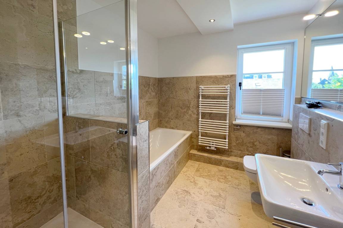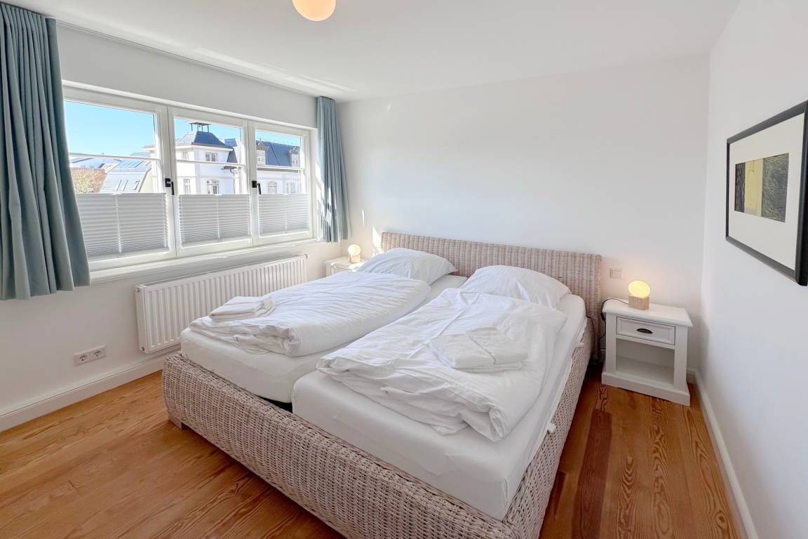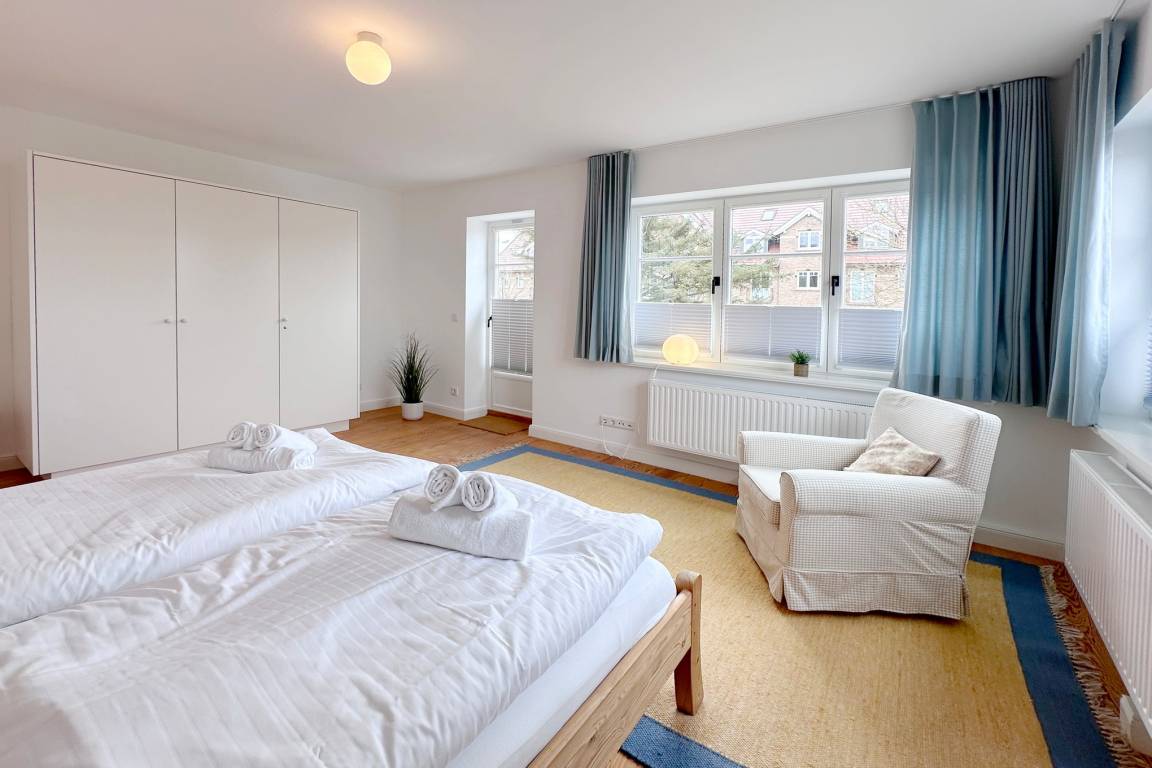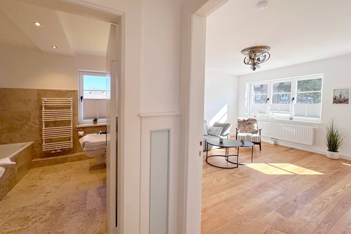 Frisch renovierte und sanierte Ferienwohnung (OG ) in zentraler strand- und citynaher Lage mit großzügigem Grundriss. Alle Räume befinden sich auf einer Ebene. 2 Schlafzimmer jeweils mit Doppelbett, modernes Badezimmer mit Dusche und Wanne.