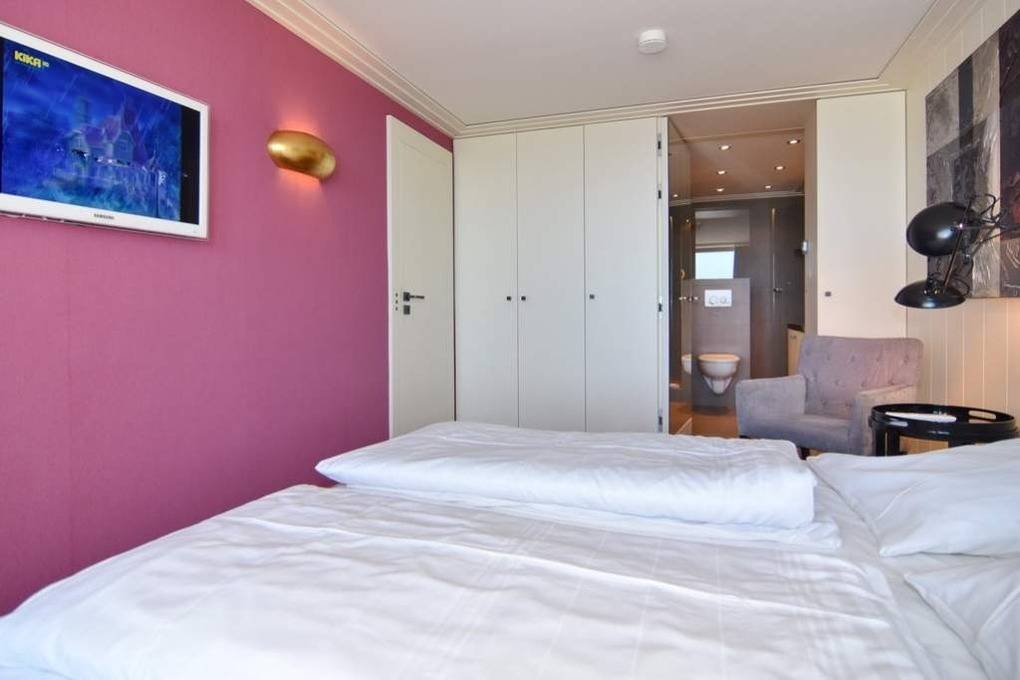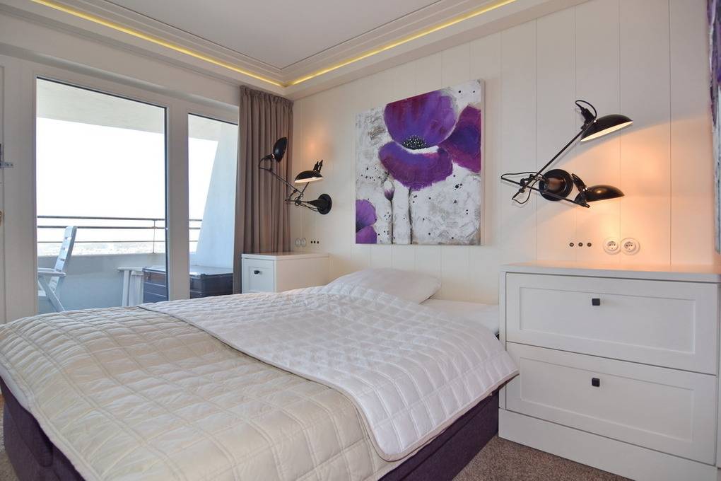 Wunderschöne 3-Zimmer-Ferienwohnung im 13 .OG des Haus "Metropol" mit fantastischem Meerblick. Großzügiger Wohnbereich mit Couchecke, Essplatz für 4 Personen auf erhöhtem Podest, TV, Internet und Zugang zum West- und Nordbalkon, separate Küche mit Geschirrspüler und Backofen, 1 Schlafzimmer mit Doppelbett, TV und Bad ensuite (Dusche) sowie Zugang zum eigenen Westbalkon, 1 Schlafzimmer mit Doppelbett, TV und Blick über die Insel, 1 weiteres Badezimmer mit Dusche, Flur mit Garderobe. Der dazugehörige Garagen-Stellplatz (10/T14) kann bei Buchungsabschluss zu € 15,--/Nacht gebucht werden. Waschküche und Fahrradkeller befinden sich im Haus. Bettwäsche und Handtücher sind zur Anreise aufgezogen.
