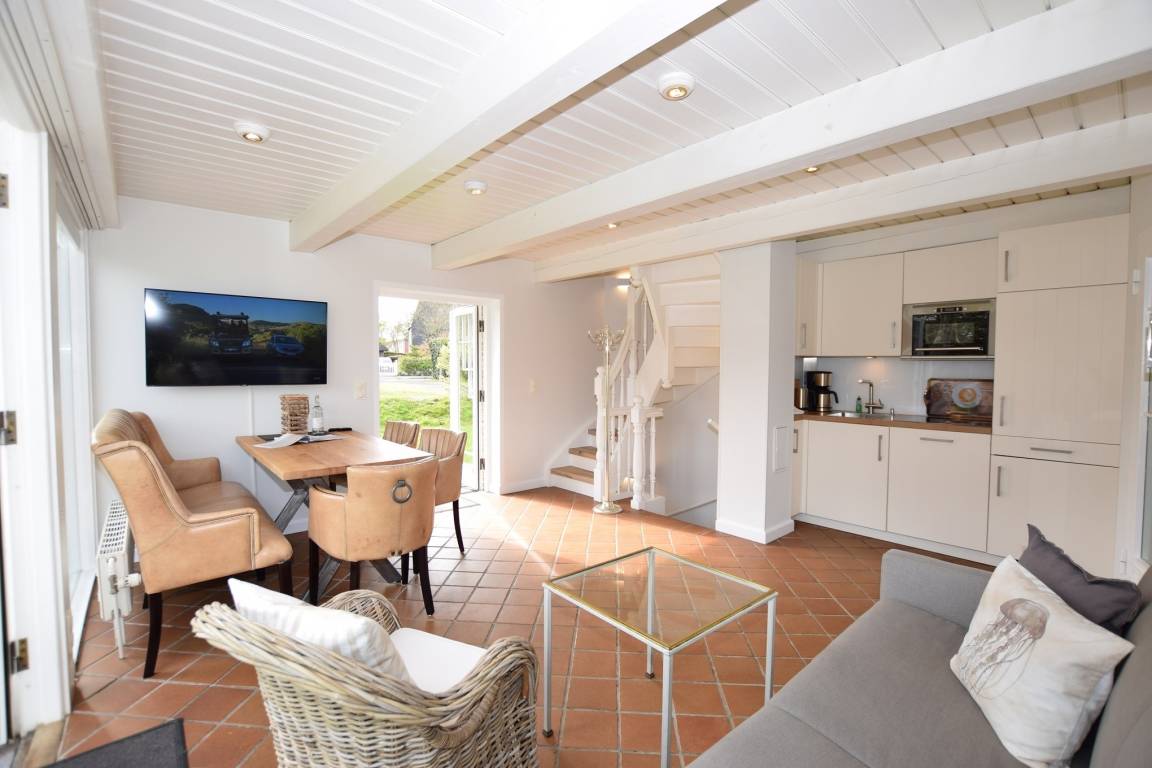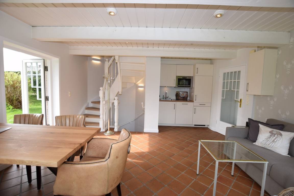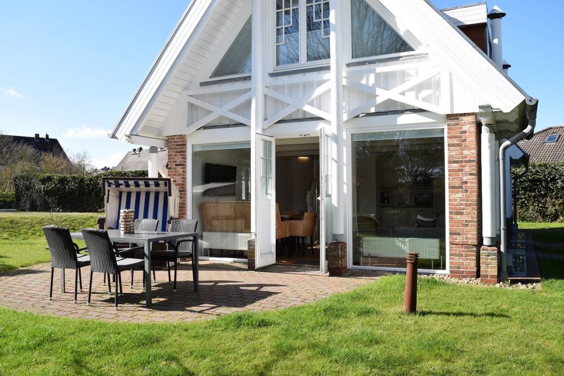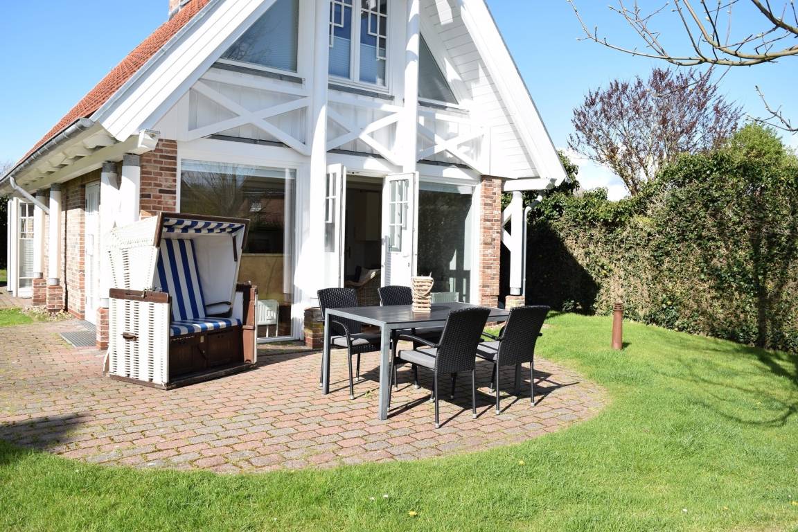 Gemütliche Nichtraucher-Doppelferienhaushälfte mit 3 Zimmern, im Landhausstil (ca. 80 qm) mit Südterrasse (Saison-Strandkorb ca. 01. April – 15. Oktober und Gartenmöbel mit Auflagen) für max. 4 Personen.