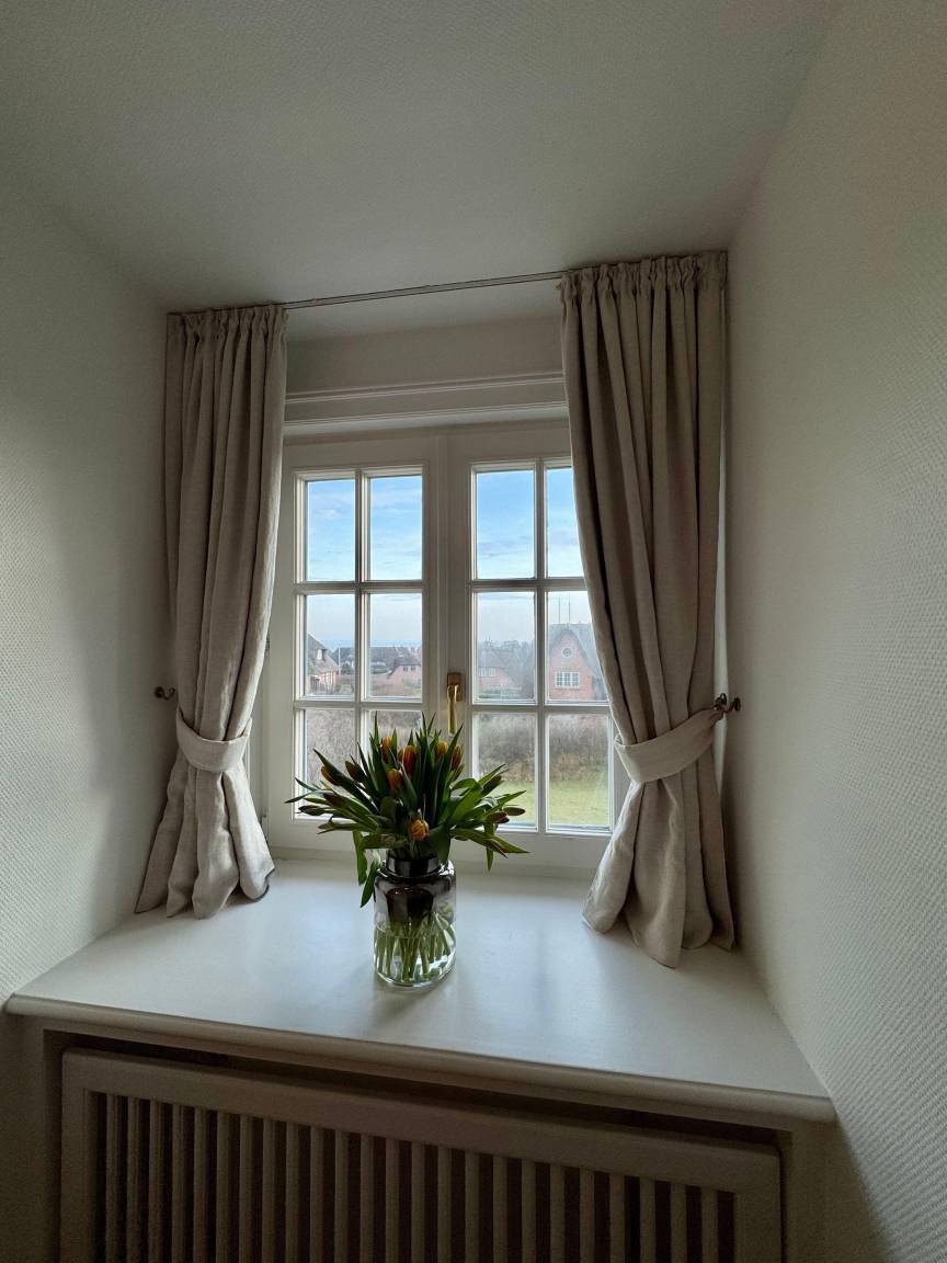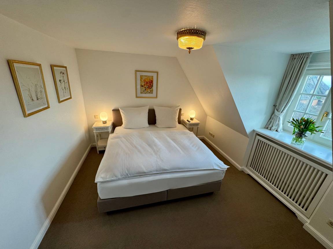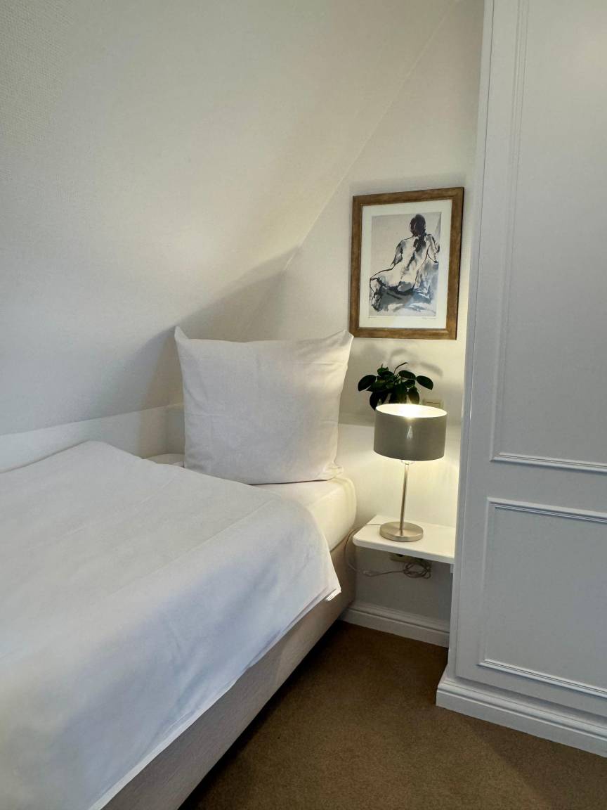 Im hyggeligen Obergeschoss mit Dachschrägen befinden sich ein Schlafzimmer mit Boxspring-Doppelbett (1,80x2,00m) mit Blick auf das Wattenmeer und ein zweites Schlafzimmer mit Blick auf die Nordsee und einem Boxspring-Einzelbett (0,90x2,00). Beide Schlafzimmer sind mit Flachbildfernsehern ausgestattet.