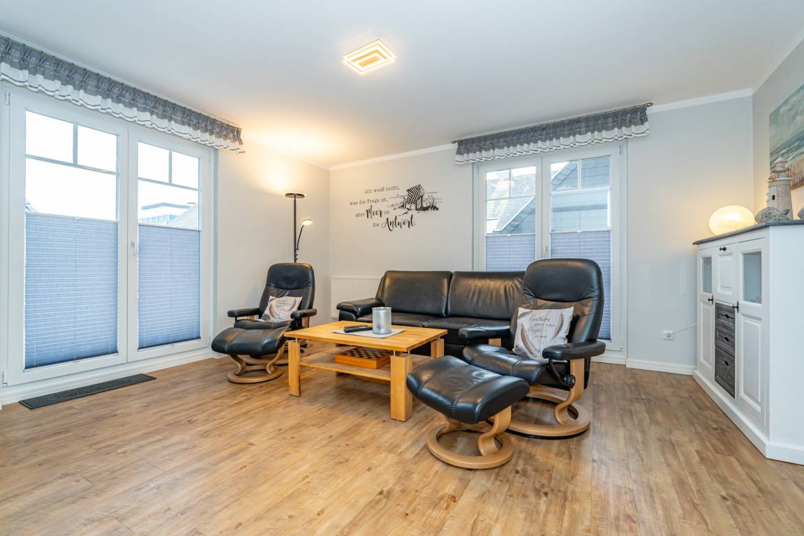 City-Appartement im modernen Strandhaus-Stil – großzügig, stilvoll und zentralDiese ca. 67 m² große 3-Zimmer-Nichtraucherwohnung mit 2 Schlafzimmern in der 2. Etage überzeugt mit ihrer geschmackvollen Einrichtung, hochwertiger Ausstattung und eine großzügige Ost-Terrasse mit Balkonmöbeln, ideal für bis zu 4 Personen.