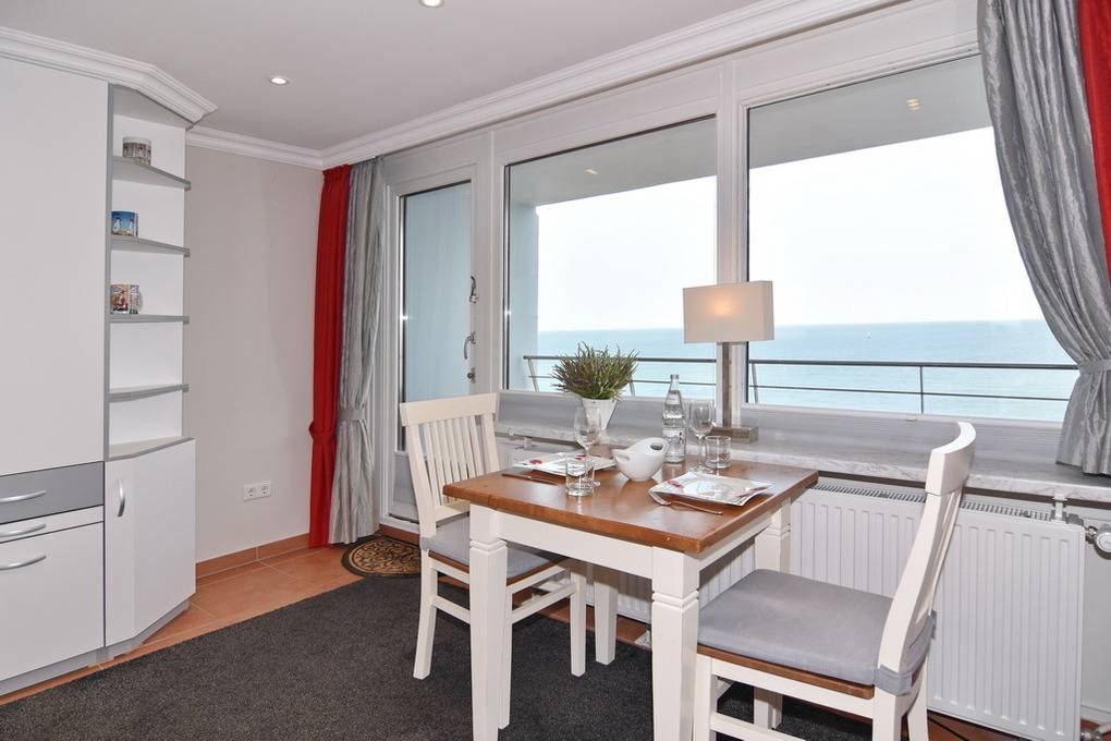 Exklusive 1-Zimmer-Ferienwohnung im 11. OG zur Seeseite, ca. 34 m², "Haus Metropol". Nichtraucher![nbsp][nbsp]Wohn-/Schlafraum mit elektrisch ausfahrbarem Doppelbett (Anleitung beachten. Mieter haften für Schäden, 2 Matratzen je 90*200), 2 Sessel, Essplatz am Fenster mit Blick aufs Meer, i-Phone Docking-Station mit CD- Player und Radio, Flat-TV, Westbalkon mit Balkonmöbel, Duschbad/WC mit Waschmaschine und Trockner, Küchenzeile im Flurbereich mit 2 Platten-Ceranfeld, Geschirrspüler, Backofen mit Mikrowelle! Tierhaltung ist nicht gestattet! Bettwäsche und Handtücher sind zur Anreise aufgezogen. Ein PKW-Stellplatz kann kostenpflichtig zugebucht werden.