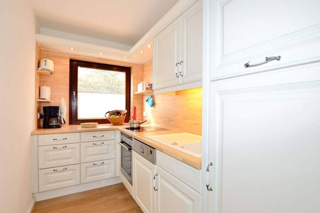 Die separate Küche hat einen Geschirrspüler, ein Glaskeramik-Kochfeld mit 4 Kochstellen, einen Backofen, eine Mikrowelle und einen Kühlschrank mit 3-Sterne-Gefrierfach und ein Fenster. Kaffeemaschine, Wasserkocher und Toaster gehören zur Grundausstattung.