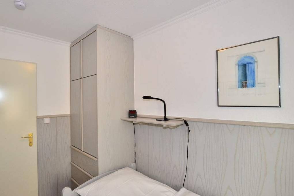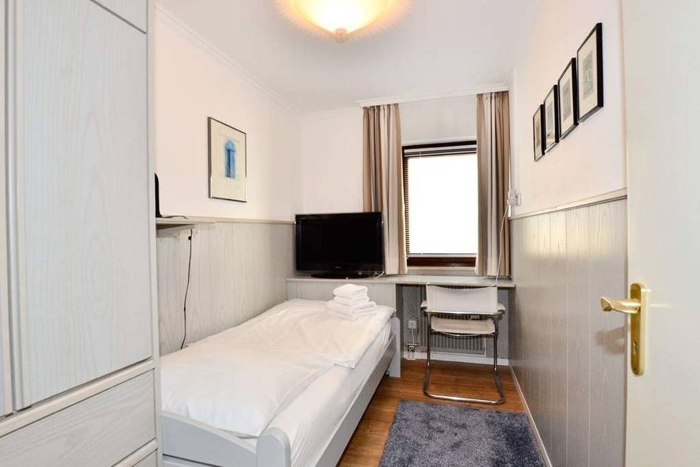 Das große Schlafzimmer ist mit einem bequemen Doppelbett mit Einzelmatratzen und das kleine Schlafzimmer mit einem Einzelbett und Flachbild-TV, Schreibkonsole und Stuhl ausgestattet. Beide Schlafzimmer sind mit Laminatboden ausgelegt, haben je ein Kabel-Flachbild-TV und Kleiderschränke.