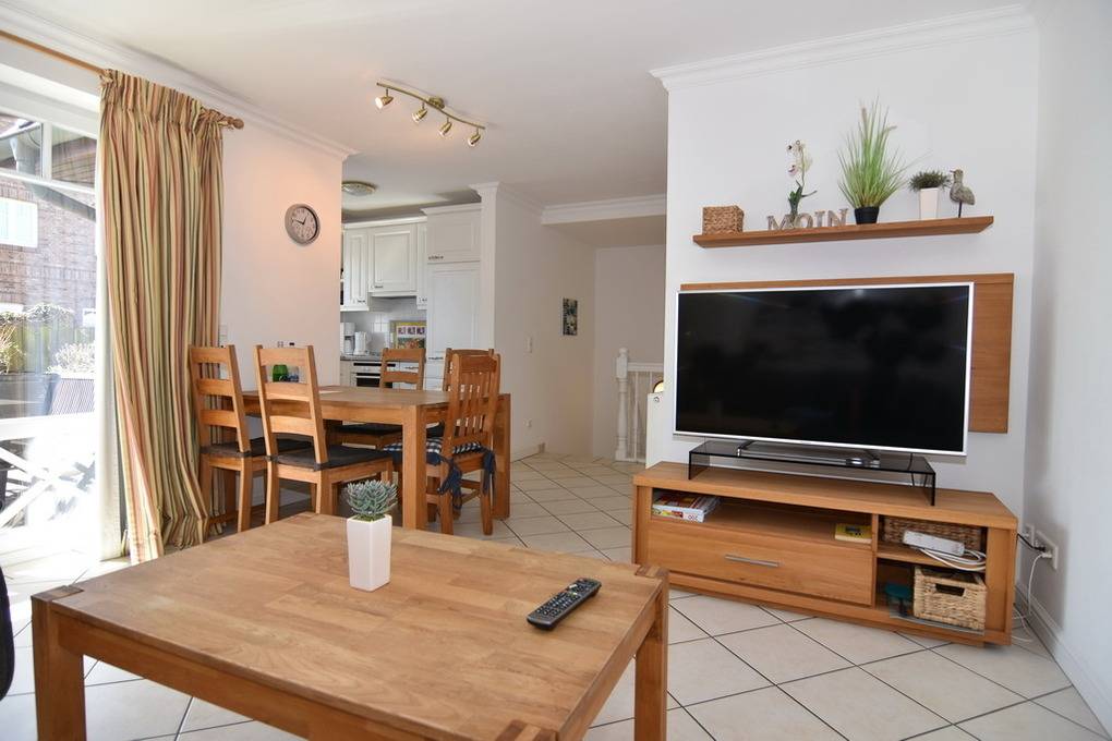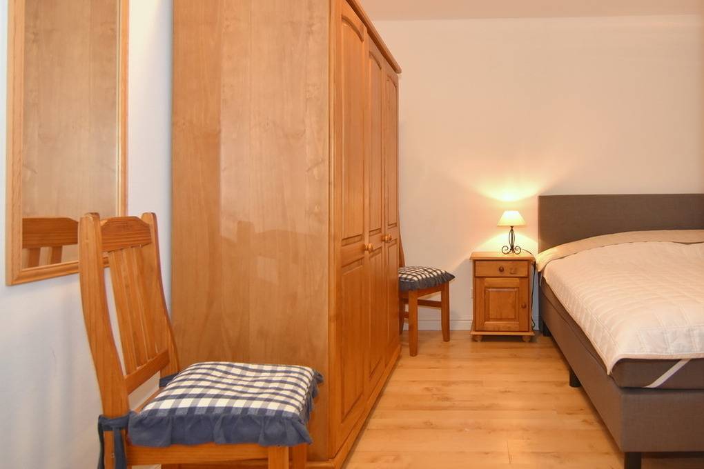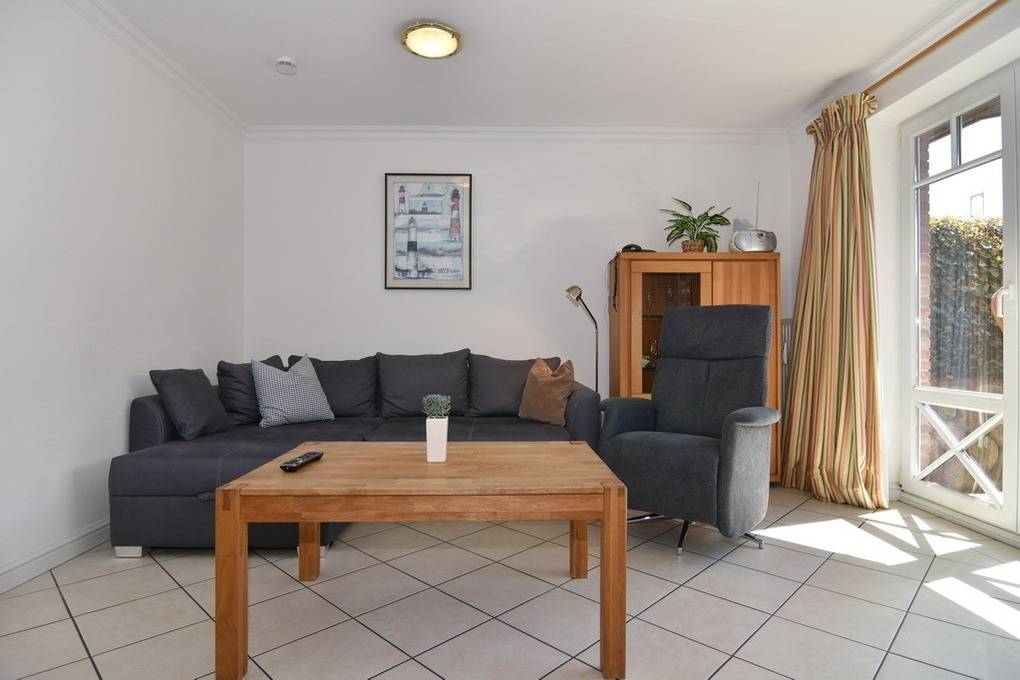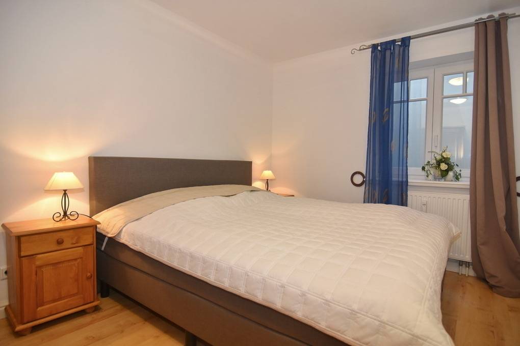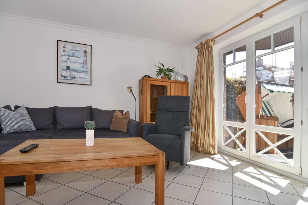 Gepflegtes 3 Zimmer-Apartment im "Hopfengarten", EG/UG, 66 m², Nichtraucher. EG: Gefliester Wohnraum mit Couch und Sessel, Esstisch, TV, Radio mit CD, Internet (Wlan ohne Gewähr),[nbsp][nbsp]Südterrasse mit Gartenmöbeln und Strandkorb (Apr.-Okt.), offene Küche mit Geschirrspüler, Mikrowelle, zusätzlich Pad-Kaffeemaschine und Backofen. UG: Schlafzimmer mit Doppel-Boxspingbett(180x200), Schlafzimmer mit 2 Einzelbetten (je 90x200), ebenerdige Dusche/ WC separates Gäste-WC, Waschmaschine mit Trockner. PKW-Stellplatz Nr. 8. Tierhaltung ist nicht gestattet. Bettwäsche und Handtücher sind zur Anreise aufgezogen.