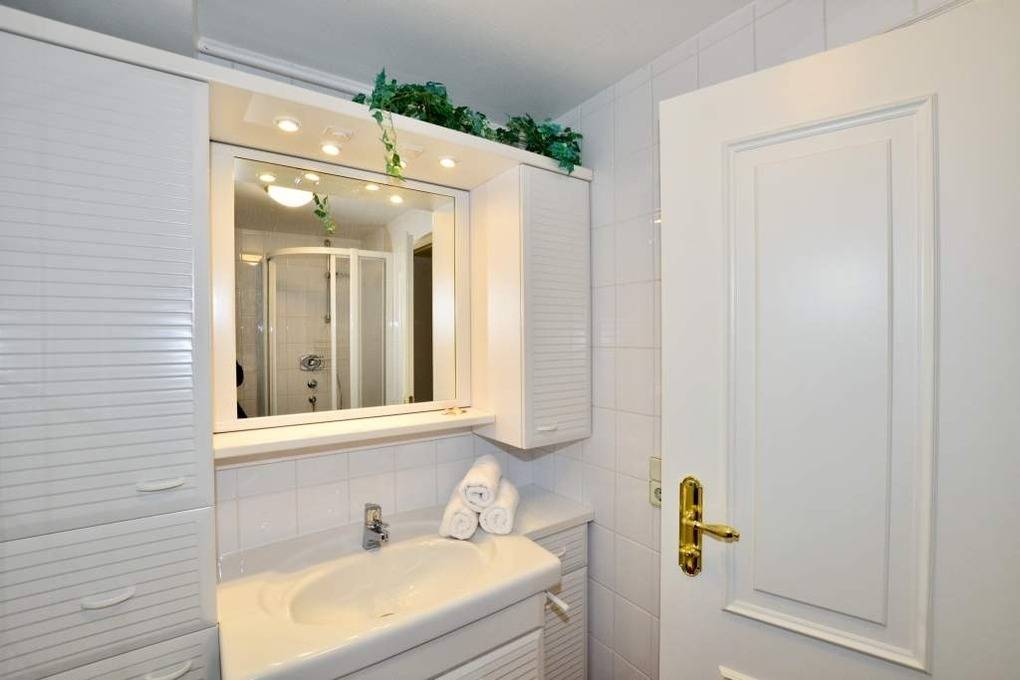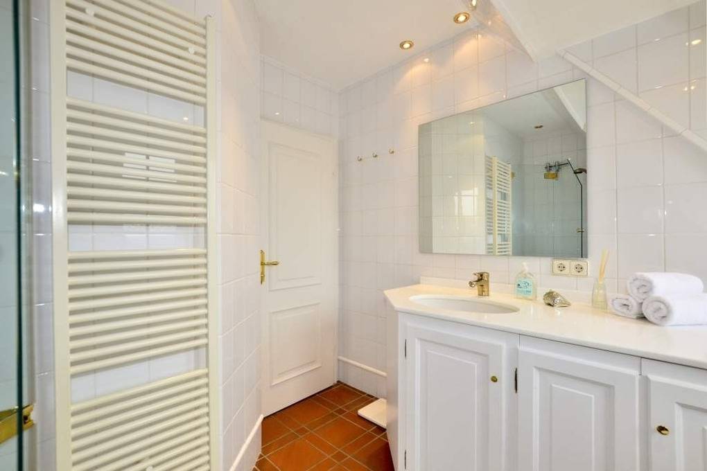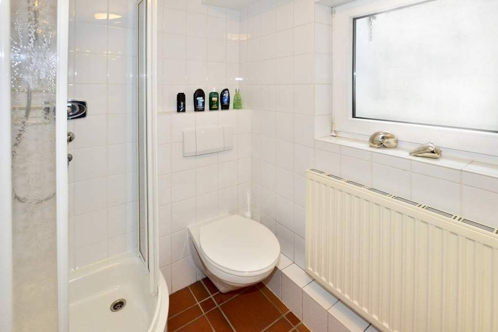 Ein zweite, moderne Badezimmer hat eine Dusche, Waschtisch, Handtuchtrockner und WC. Im separaten Abstellraum steht außerdem ein Wäschetrockner und Bügelbrett zur Verfügung.