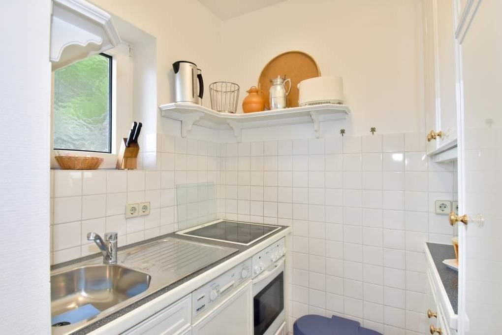 Die vollausgestattete, neue Küche hat einen Geschirrspüler, einen Herd mit Backofen, Cerankochfeld (4 Felder), einen Kühlschrank mit 3-Sterne-Gefrierfach und Fenster.