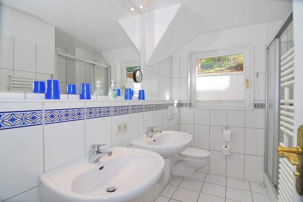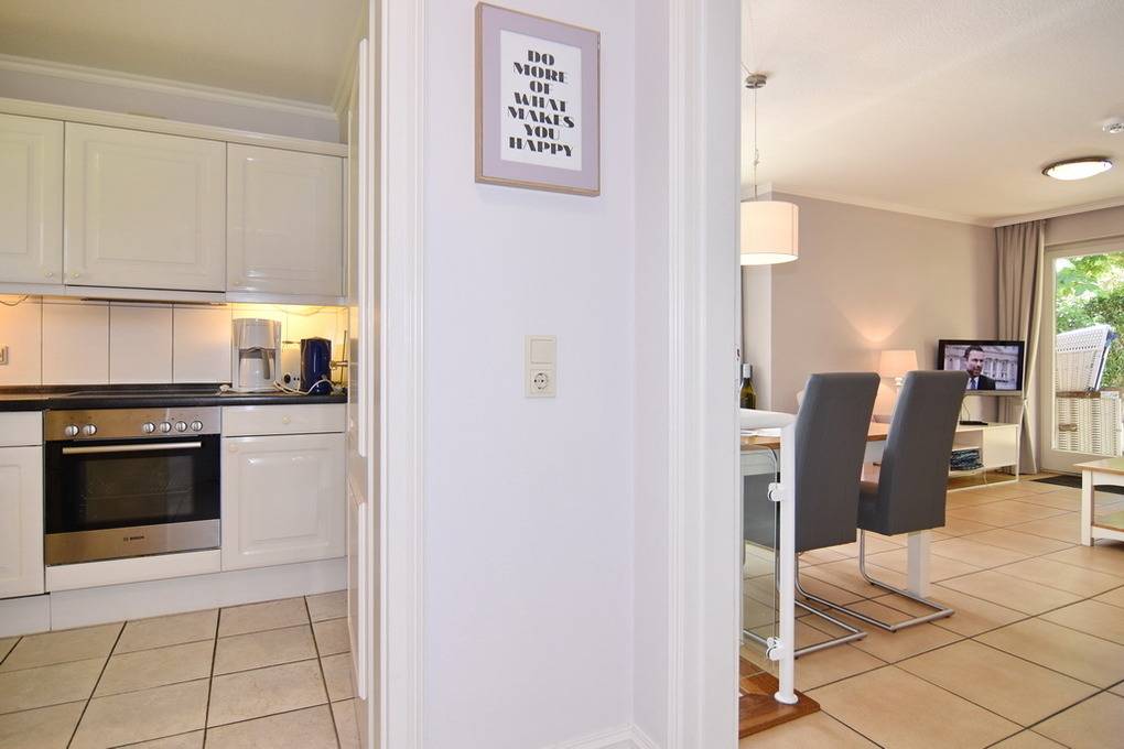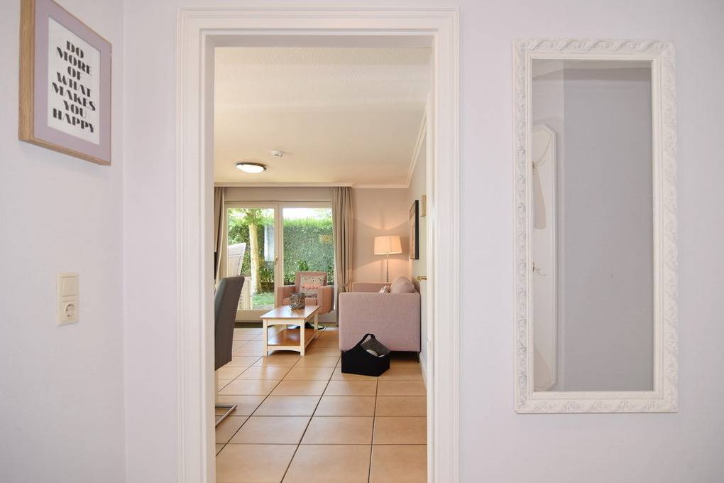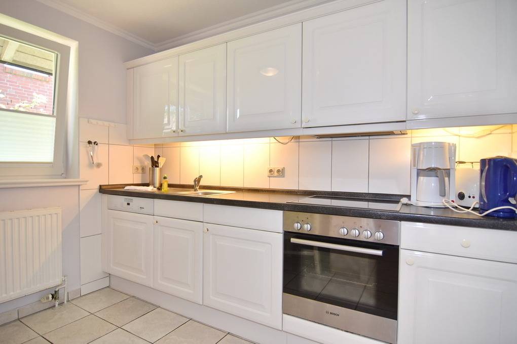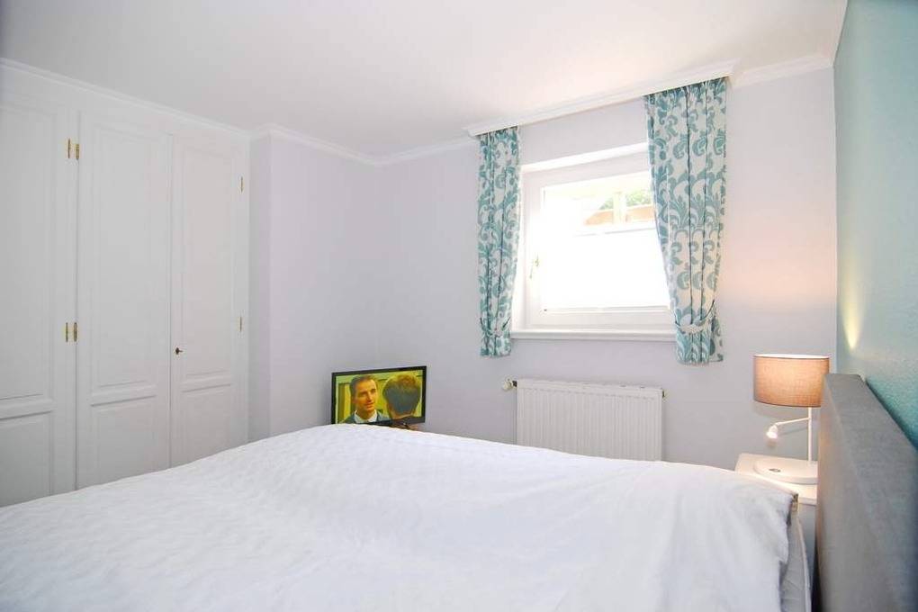Schicke 3-Zimmer-Ferienwohnung mit Westterrasse im Haus "Eva". Ca. 70m². Nichtraucher! EG: Wohnzimmer mit Couch und 2 Sesseln, Essplatz, Flat-TV, Stereo / CD / DVD. Separate Küche mit Geschirrspüler und Backofen, Gäste-WC. UG: 2 Schlafzimmer mit Boxspringbetten (180 x 200, 1 davon mit TV), sowie 1 Duschbad/WC. PKW-Stellplatz Nr. 7 kostenlos (bitte anmelden), Strandkorb (Apr.-Okt.), Tierhaltung ist im EG gestattet, bitte anmelden (keine Kampfhunde). Im Haus: Kostenlose Nutzung von Schwimmbad und Finnischer Sauna. - Waschküche gegen Gebühr. W-Lan (ohne Gewähr). Bettwäsche und Handtücher sind zur Anreise aufgezogen!