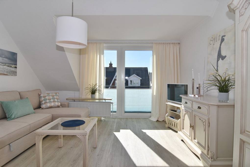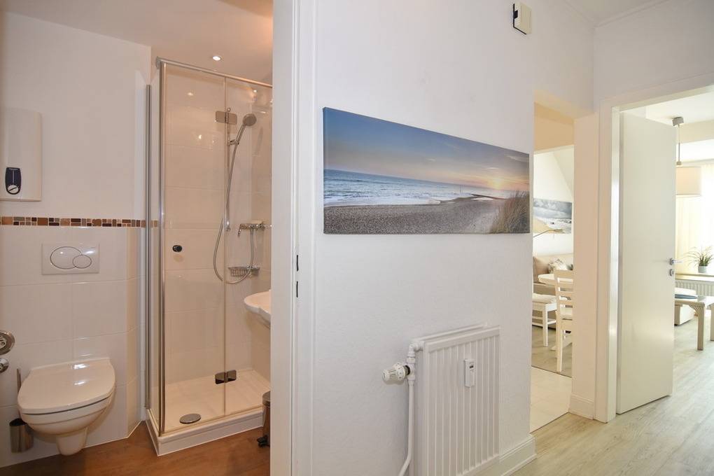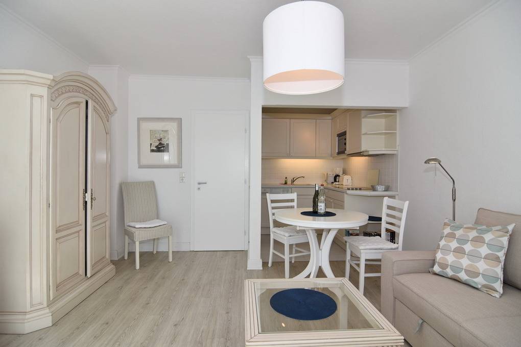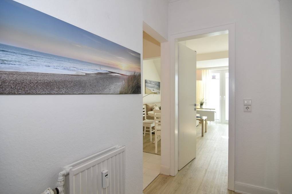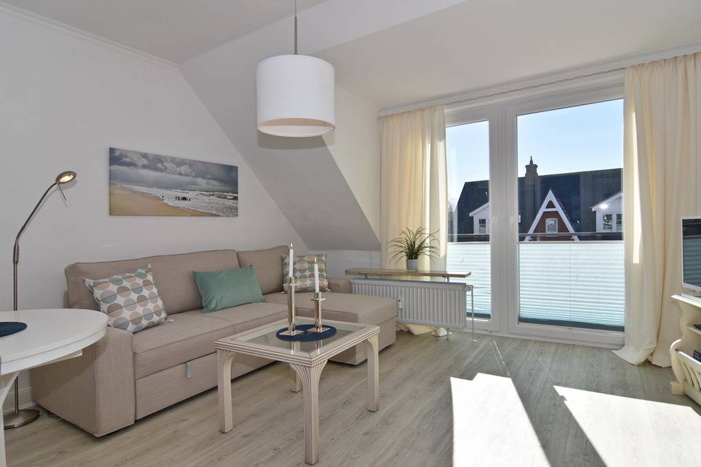 Hübsche 2-Zimmer-Ferienwohnung, ca. 45 m², 2. OG / DG, App. 14, "Nichtraucher". Obergeschoss: Wohnraum mit Schlafcouch und Sessel, Essplatz, Kabel-TV, Radio, W-Lan (ohne Gewähr), offene Küche mit Mikrowelle und Waschmaschine, Südbalkon mit Balkonmöbeln, Duschbad/WC. Dachgeschoss: Schlafzimmer mit Doppelbett (steht an der Wand) und Abstellraum. Tierhaltung und rauchen im Appartement ist nicht gestattet. Wohn- und Schlafzimmer sind mit Laminat ausgelegt. PKW-Stellplatz Nr. 14 auf dem Hof. Bettwäsche und Handtücher sind zur Anreise aufgezogen. Auf dem gegenüberliegenden Grundstück entsteht ab März 2024 ein Neubauvorhaben, hier kann es zu Lärmbelästigungen kommen.