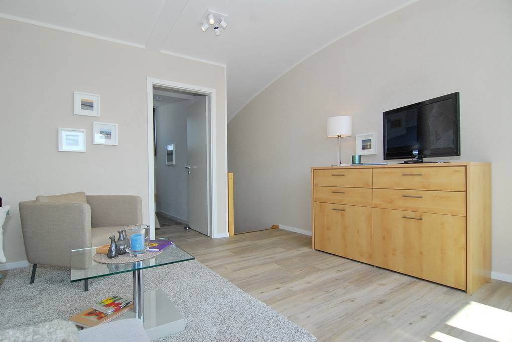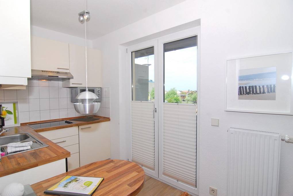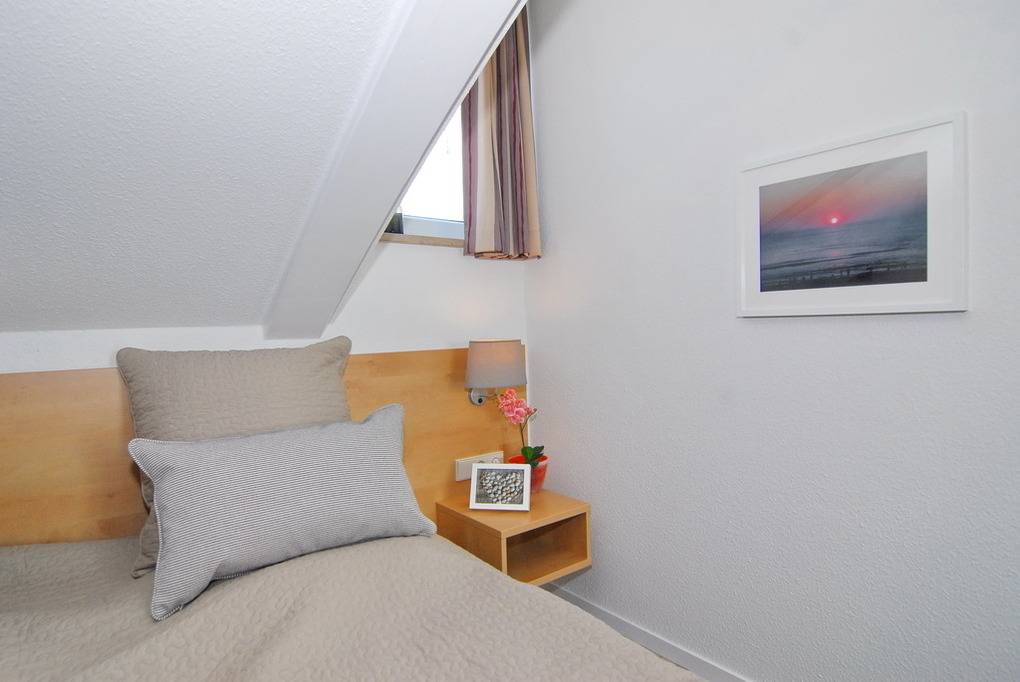 Die Ferienwohnung "Sonnendeck" befindet sich im gelben Haus der Residenz Mauritius. Mit 46m² und ab sofort in neuem Ambiente bietet die Wohnung Platz für bis zu 3 Personen. Frisch renoviert verfügt die Wohnung nun über einen Designboden und neues Mobiliar. Auf der ersten Ebene (2.OG) befinden sich die Küche mit Geschirrspüler, Mikrowelle, Nespresso und Kaffeefiltermaschine, Esstresen und Nordbalkon sowie Flur und Duschbad/WC. Im Dachgeschoss befindet sich der neu gestaltete Wohnraum mit Eckgarnitur und Sessel, Flat-TV und großzügiger Südterrasse sowie das Schlafzimmer mit Doppelbett. Bei gutem Wetter macht die Wohnung Ihrem Namen hier alle Ehre - genießen Sie die schönen Stunden auf den Sonnenliegen. Ein Internetanschluß (ohne Gewähr) ist vorhanden. Waschküche und Fahrradkeller befinden sich im Nebenhaus "Mauritius". Pkw-Stellplatz kann kostenpflichtig hinzugebucht werden. Bettwäsche und Handtücher sind zur Anreise aufgezogen! Tierhaltung ist nicht gestattet.