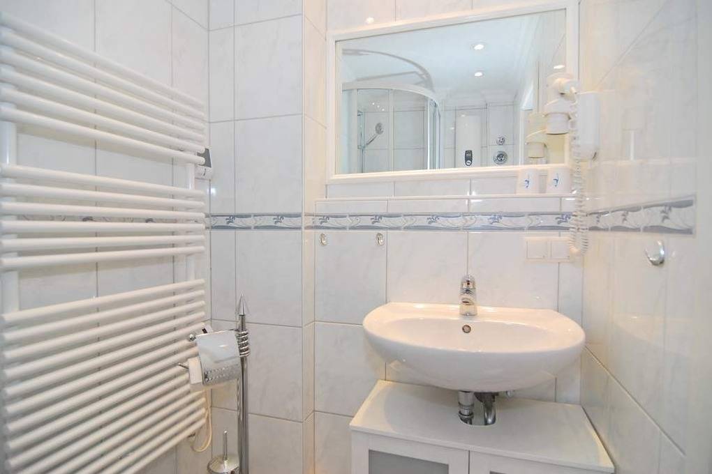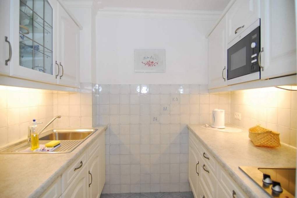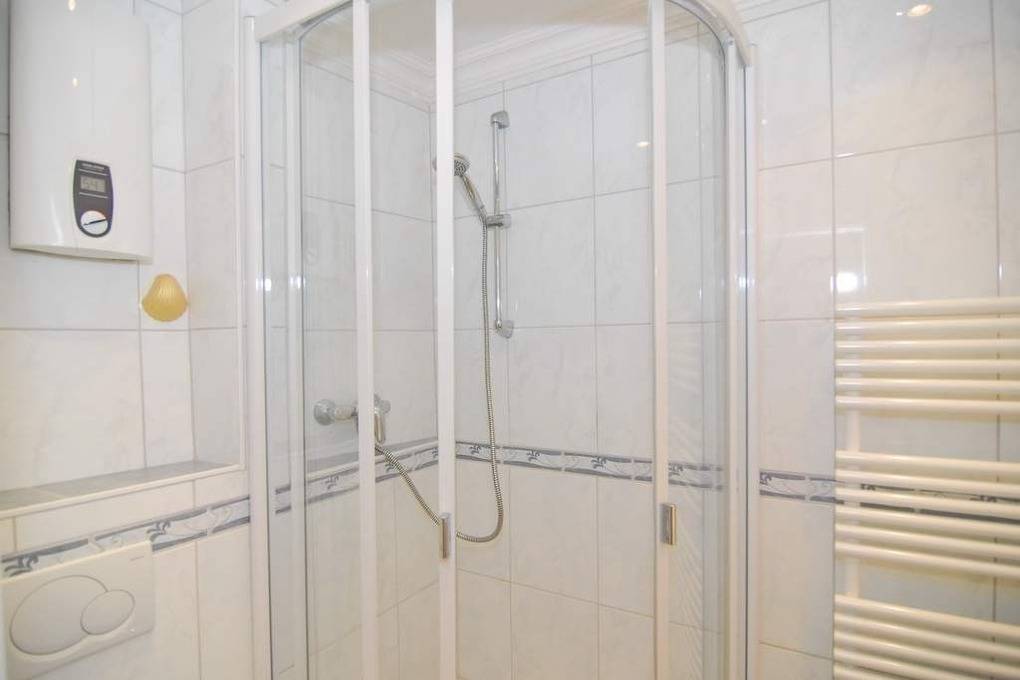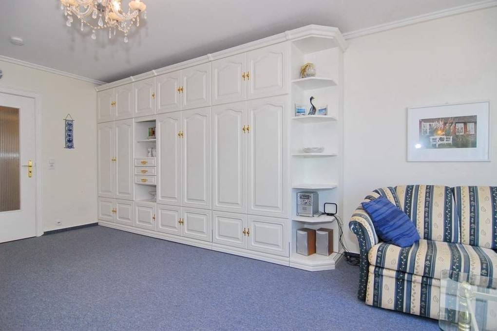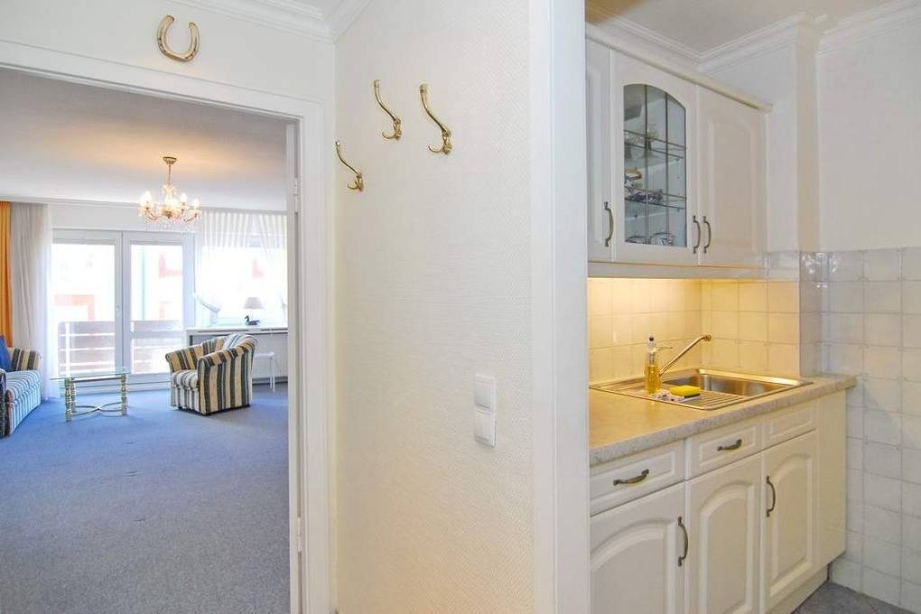 1-Zimmer-Ferienwohnung, ca. 40 m², 4. OG. "Nichtraucher". Wohn-/Schlafraum mit kleinem Westbalkon und teilweisem Meeresblick, Schrankwand mit Einzelschrankbetten, Eßtisch mit 3 Stühlen, 2 Sitzer-Couch, Sessel und Couchtisch, Sideboard, Kabel-Flat-TV, Radio, separate Küche mit 2 Platten Cerankochfeld, Mikrowelle und Geschirrspüler, Duschbad mit kleiner Runddusche, Fön und WC. Fahrstuhl vorhanden. Tierhaltung ist nicht gestattet. Pkw-Stellplatz kann kostenpflichtig hinzugebucht werden. Bettwäsche und Handtücher sind zur Anreise aufgezogen!