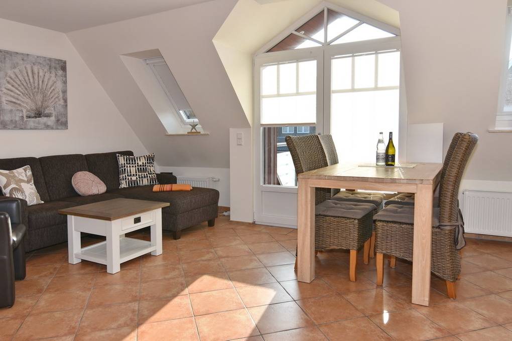 Exklusive 3 Zimmer-Ferienwohnung in guter Lage. "Nichtraucher". Ca. 57 m². OG: Geschmackvoll möbliertes Wohnzimmer mit Eckcouch und[nbsp][nbsp]Korb-Sessel, Essplatz für 4 Personen, Flat-TV/Stereo, W-LAN (ohne Gewähr), Südbalkon mit Balkonmöbeln, offene Küche mit Mikrowelle, Backofen und Geschirrspüler, Duschbad/WC, Schlafzimmer mit Doppelbett ( 160x200 ). DG: Schlafzimmer mit Doppelbett ( 160x200 ) und Flat-TV. Kein PKW-Stellplatz am Haus (Bettwäsche und Handtücher sind zur Anreise aufgezogen. Mindestmietdauer im Winter 7 Tage!