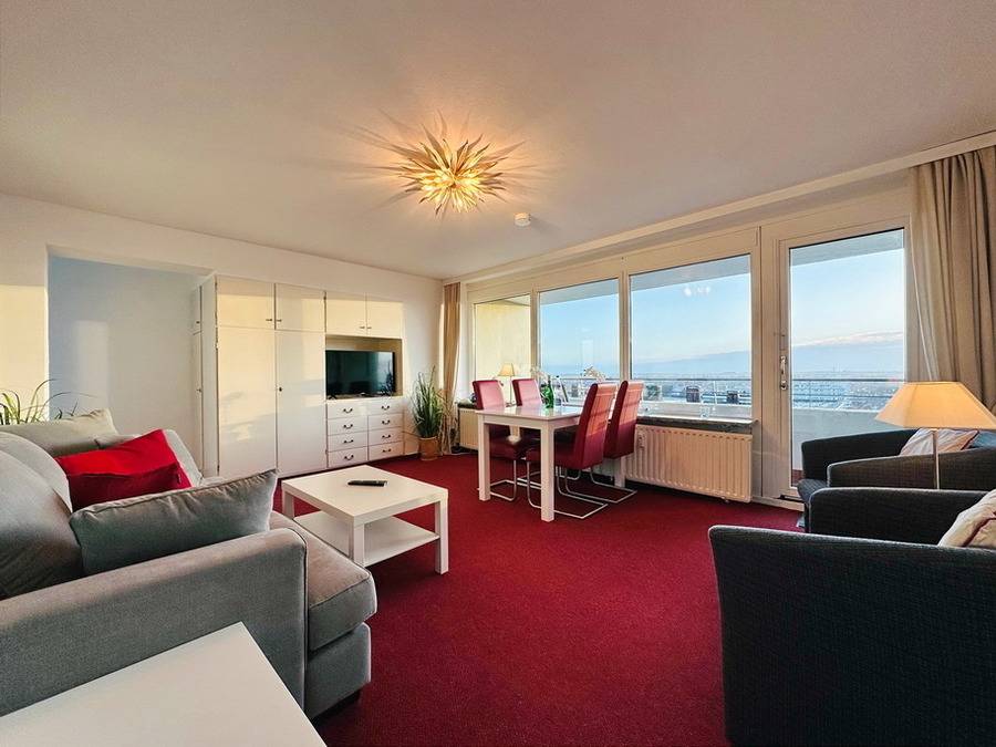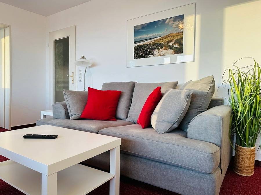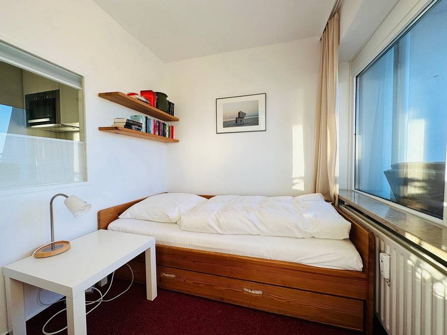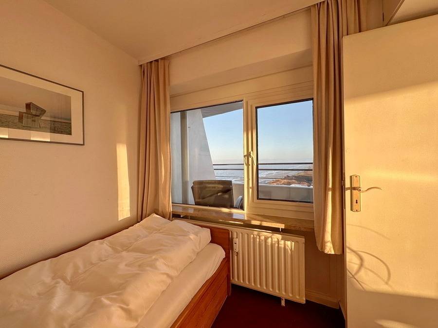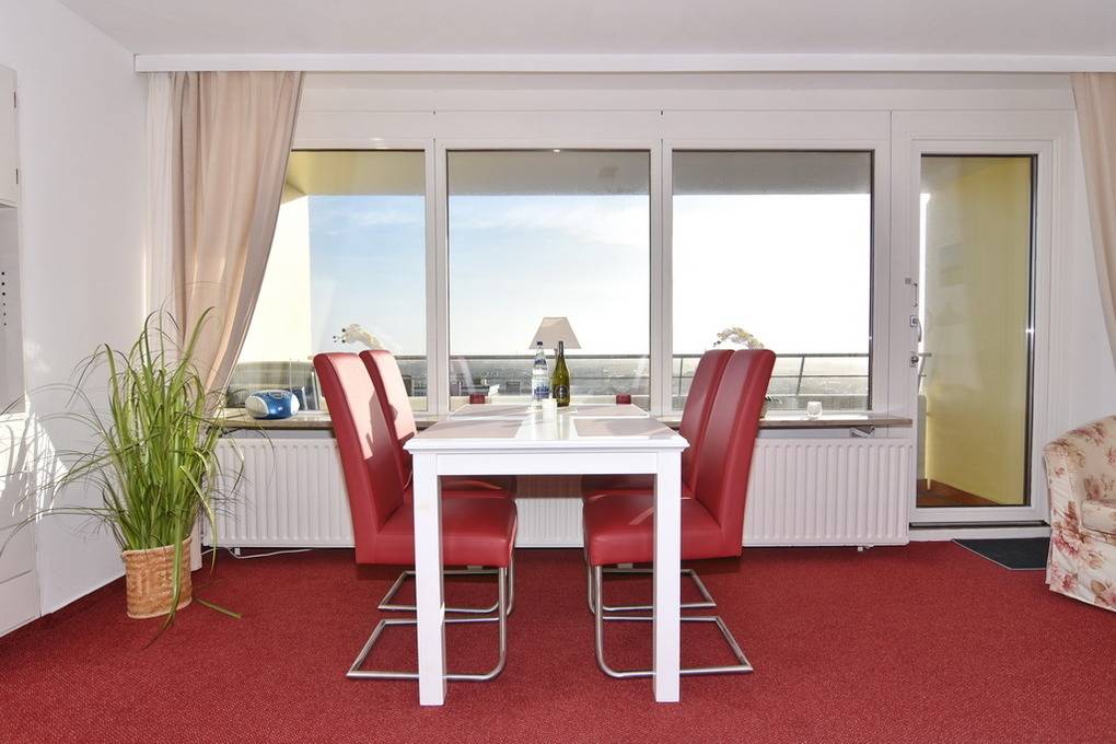 Gepflegte 3-Zimmer-Wohnung im Haus "Metropol" im 10. OG, Nord-Ost-Ecke mit Meerblick, Nichtraucher. Wohnraum mit Sofa und 2 Sessel, TV,, Radio, W-Lan (ohne Gewähr), Essplatz für 4 Personen, Nordbalkon mit Meeresblick, Ostbalkon mit Blick über die Insel, separate Küche mit 4-Platten-Herd und Mikrowelle, 1 kleines Schlafzimmer mit Einzelbett und Blick auf das Meer, 1 Schlafzimmer mit Doppelbett (2x90x200) und Ostbalkon sowie Blick über die Insel, Wannenbad/WC mit Duschvorrichtung. Tierhaltung ist nicht gestattet. Bettwäsche und Handtücher sind zur Anreise aufgezogen. PKW-Stellplatz/Garage kann kostenpflichtig zugebucht werden.
