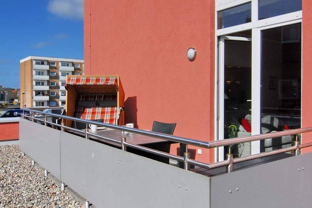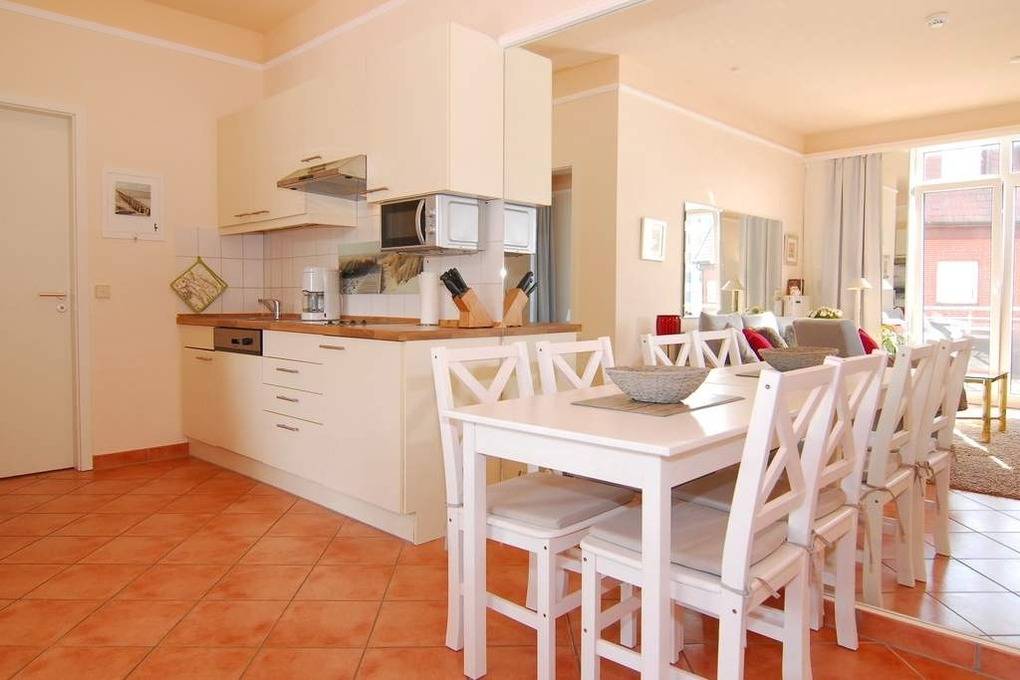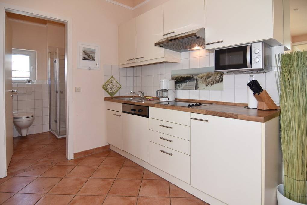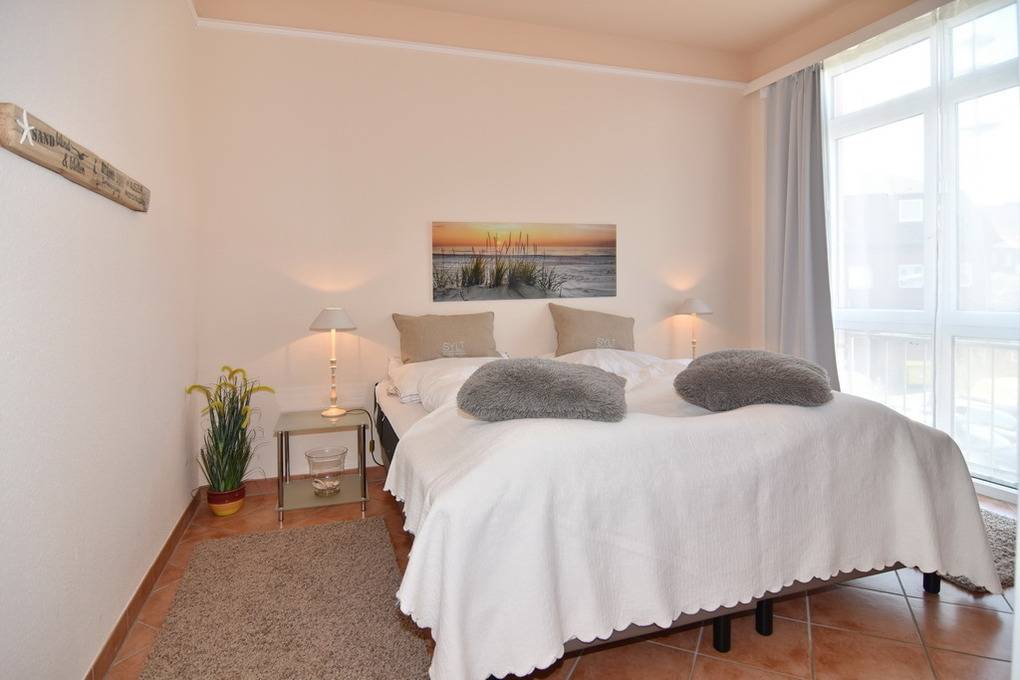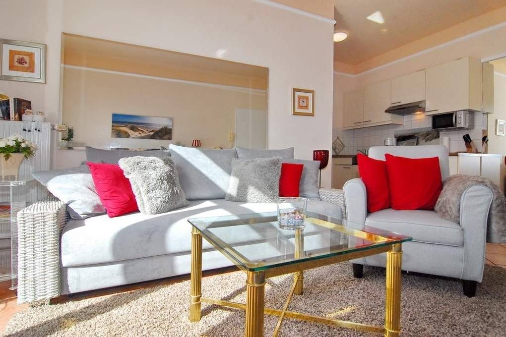 Liebevoll eingerichtete 2-Zimmer-Ferienwohnung im roten Haus der Residenz Mauritius. Auf ca. 39m² im 1. OG. bietet Ihnen diese Wohnung einen Wohnraum mit gemütlicher Sitz- und Essecke sowie eine Küchenzeile mit Mikrowelle und Geschirrspüler. Das Sofa lässt sich mühelos zu einer Schlafmöglichkeit für 2 Personen umwandeln. Vom Wohnzimmer aus gelangen Sie auf den großen Westbalkon mit Strandkorb, Tisch und Stühlen - hier genießen Sie die Sonne bis in die Abendstunden. Das Duschbad/WC und das separate Schlafzimmer mit eigenem TV runden das Angebot ab. Das Apartment ist komplett gefliest. Internetanschluß (ohne Gewähr) ist vorhanden. Eine Waschküche und ein Fahrradkeller befinden sich im Nebenhaus "Mauritius". Tierhaltung ist gestattet und muss bitte angemeldet werden. Pkw-Stellplatz kann kostenpflichtig hinzugebucht werden. Bettwäsche und Handtücher sind zur Anreise aufgezogen!
