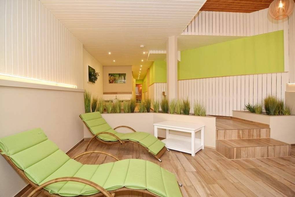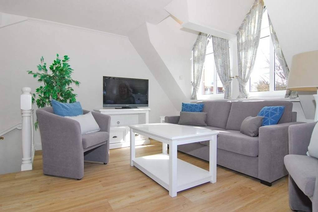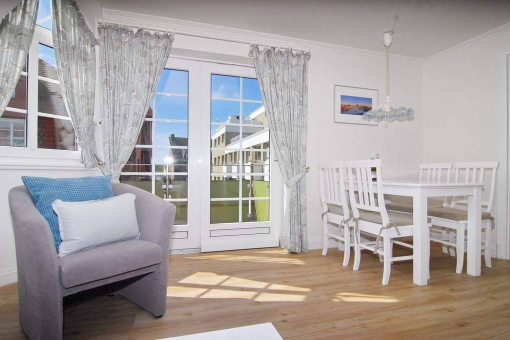 Helle 2-Zimmer-Ferienwohnung mit Südwestbalkon im Haus "Olympia 1". Ca. 52m². OG: Wohnzimmer mit Essecke, Doppelschlafcouch und Couchtisch, Kabel-TV, Radio, Offenes W-LAN-Netzwerk steht zur Verfügung (ohne Gewähr), separate Küche mit Geschirrspüler, Duschbad/WC. DG: Schlafzimmer mit Doppelbett und Einbauschränken. Nichtraucherwohnung, Tierhaltung verboten. Unter Haus 4 befindet sich das Schwimmbad mit Finnischer Sauna. Unter Haus 2 befindet sich ein separater Wellnessbereich mit Dampfsauna, Finnischer Sauna und Ruhebereich. Achtung: Es besteht kein direkter Zugang zum Wellnessbereich, zur Waschküche mit Gemeinschaftswaschmaschine/Trockner und Tiefgarage. Diese sind über das Nachbar-Haus 2 zu erreichen.[nbsp] Bettwäsche und Handtücher sind zur Anreise aufgezogen. Ein Garagenstellplatz kann kostenpflichtig gebucht werden!