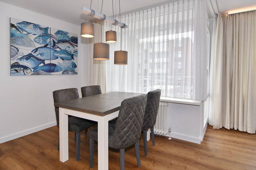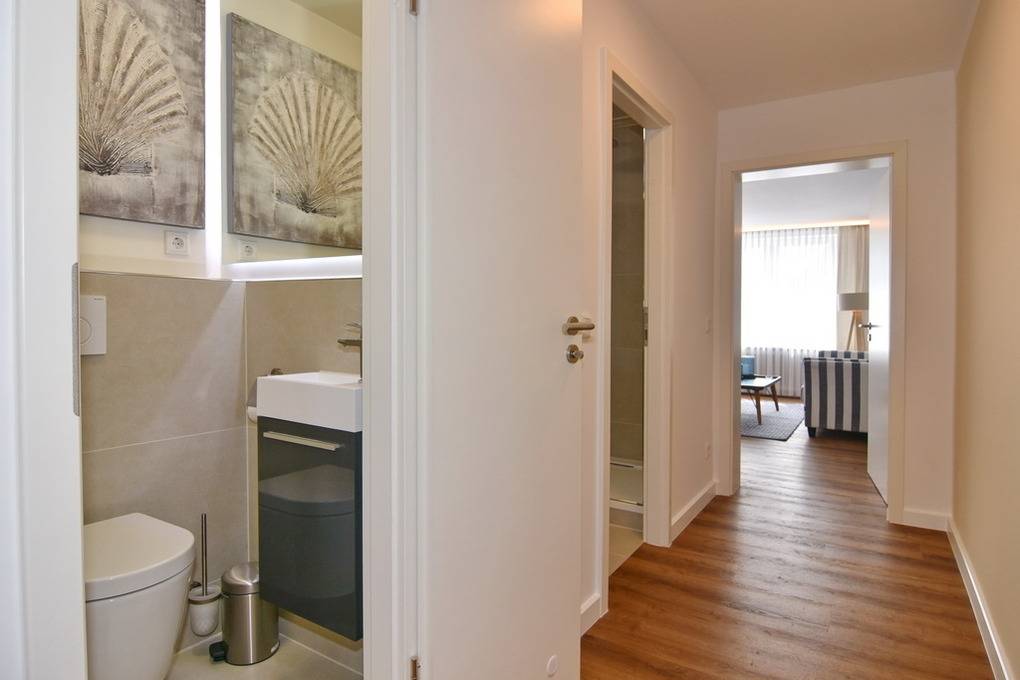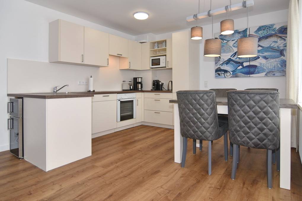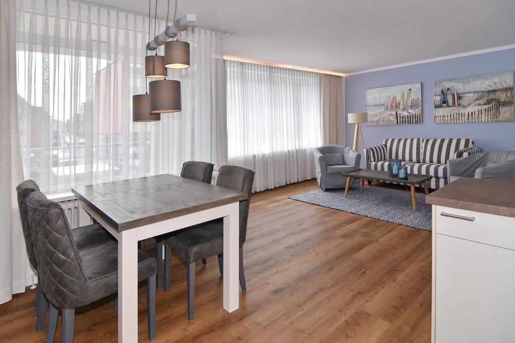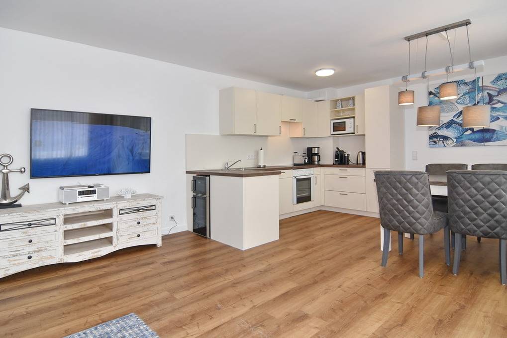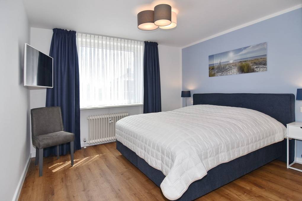 Großzügige und in 2021 frisch renovierte 3-Zimmer-Wohnung mit Südbalkon in strandnaher Wohnlage im Haus "Brandenburg". Ca. 76 m² im 1.OG. Sonniges Wohnzimmer mit offener Küche, Essplatz am Fenster und Couchecke mit 2 Sesseln. 1 Schlafzimmer mit Boxspringbetten (180x200), 1 Schlafzimmer mit Boxspringbetten (160x200), Badezimmer mit Dusche, Gäste-WC, Diele und Flur. Flat-TVs im Wohnzimmer wie in beiden Schlafzimmern, Musikanlage, Internet (ohne Gewähr). Balkon mit Tisch und Stühlen. Die gesamte Wohnung ist mit Designfußboden ausgelegt. Eine Waschküche mit Münzautomaten befindet sich im Haus. Tierhaltung und Rauchen ist nicht erlaubt. Bettwäsche und Handtücher sind zur Anreise aufgezogen. Zur Wohnung gehört kein Pkw-Stellplatz.