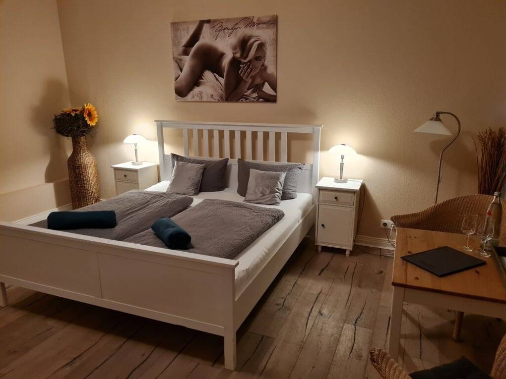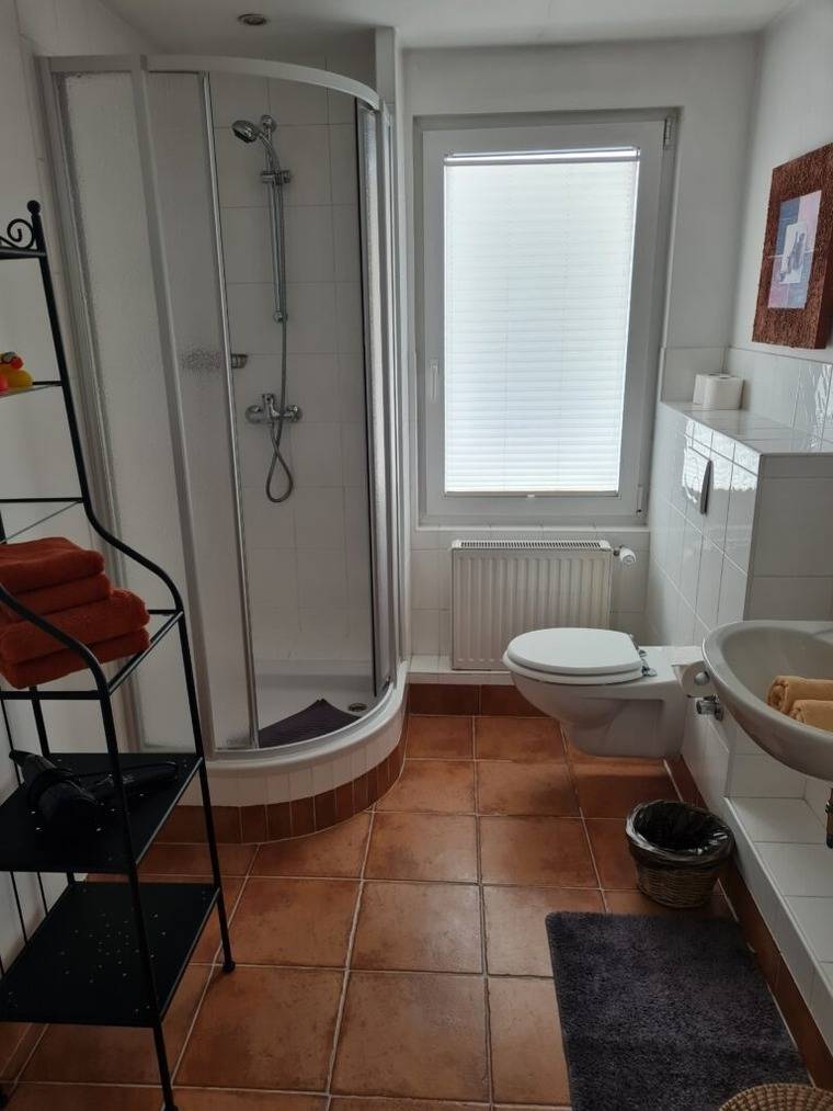 Die Ferienwohnung befindet sich im 3. Obergeschoss mit Ausblick auf die Friedrichstraße. Holzboden, helle Möbel und nicht zuletzt der besondere Charme des Hauses gehören zu den Räumlichkeiten. Die Badezimmer in unserem Gästehaus sind alle topmodern und selbstverständlich in sehr gepflegtem Zustand.