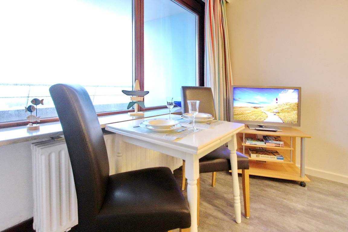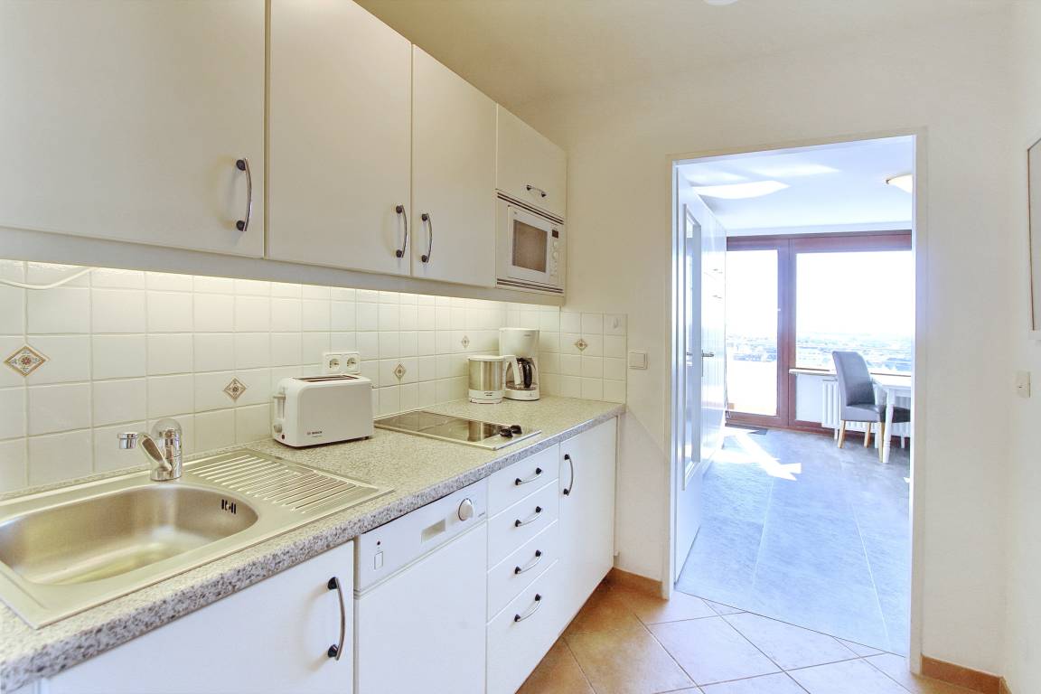 Gepflegte 1-Zimmer-Wohnung im Herzen von Westerland - sie befindet sich in der 13. Etage im Kurzentrum von Westerland mit herrlichem Weitblick über die City bis hin zum Wattenmeer. Auf dem vorgelagertem Ost-Balkon können Sie ungehindert den Sonnenaufgang genießen. Das Schwimmbad Sylter Welle, der Hauptstrand und die beiden Fußgängerzonen befinden sich in unmittelbarer Nähe. Der kombinierte Wohn-/Schlafraum verfügt über 2 Einzel-Schrankbetten, 2 gemütlichen Sesseln und einem Essplatz mit 2 Stühlen. In der, im Vorflur befindlichen, Küche finden Sie eine Geschirrspülmaschine, ein Ceran-Kochfeld mit 2 Platten, eine Mikrowelle und ein Kühlschrank mit Gefrierfach. Helles Duschbad/WC mit Handtuchheizkörper. Nichtraucherwohnung. Haustiere nicht gestattet. Wohnungsgröße ca. 30 m². Ein Hotspot im Haus (WEG Haus Metropol - Passwortfrei - ohne Gewähr) ermöglicht Ihnen einen kabellosen und kostenfreien Zugang zum Internet.