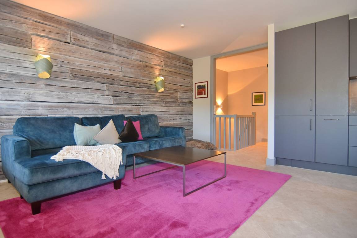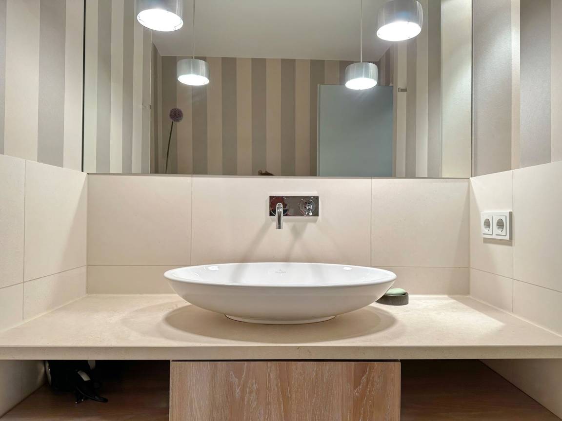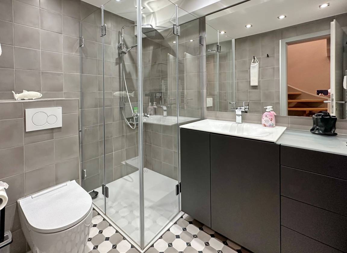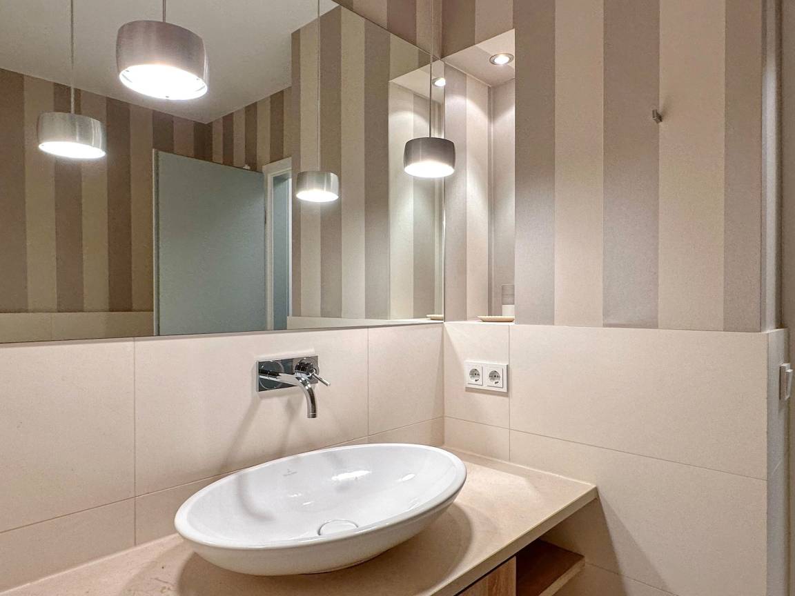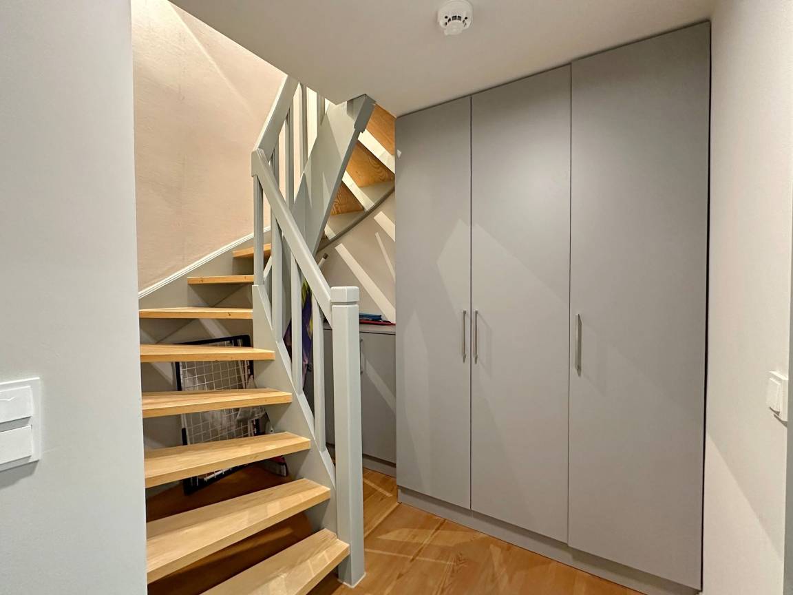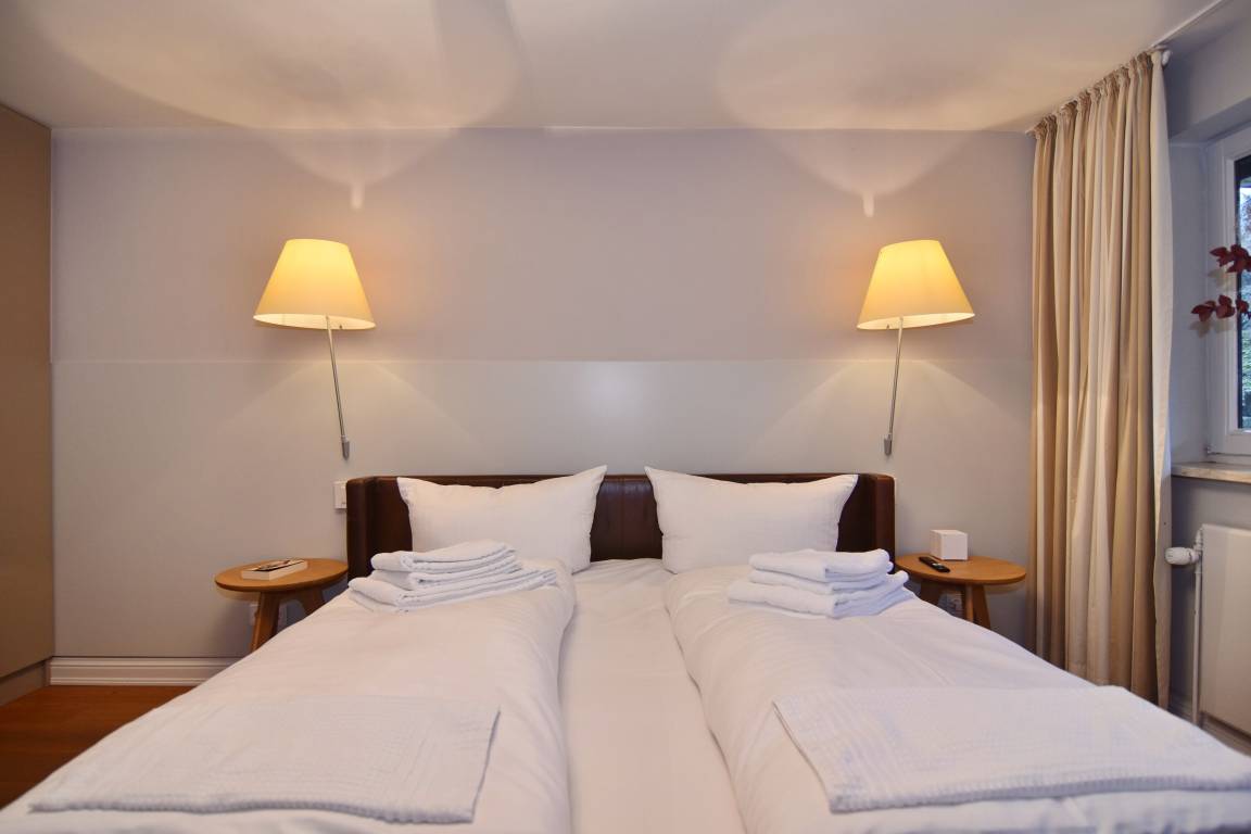 Die geschmackvolle 3-Zimmer-Wohnung erstreckt sich über zwei Ebenen. Im Hochparterre befindet sich das Wohnzimmer mit Sitz- und Essecke, TV, WLAN, offene Küche mit Induktionsherd, Backofen mit Mikrowellenfunktion, Ceranherd und Geschirrspüler, Kühlschrank mit Gefrierfach sowie einem Badezimmer mit Wanne und WC. Vom Wohnzimmer aus gelangen Sie auf den möblierten Westbalkon. Eine offene Treppe ins Souterrain führt zu 2 Schlafzimmern und einem weiteren Badezimmer mit Dusche. Beide Schlafzimmer verfügen über einen großen TV. Das große Schlafzimmer hat einen Kleideschrank. Weitere Schrankflächen befinden sich im Vorflur der Schlafräume.