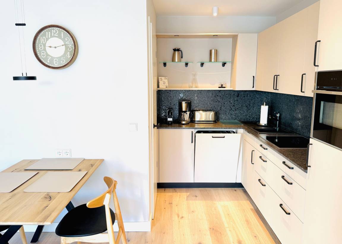 - Voll ausgestattete Küchenzeile mit Geschirrspüler, Mikrowelle, Wasserkocher und Kaffeemaschinen (Filter & Nespresso)